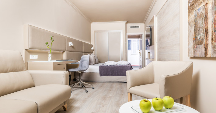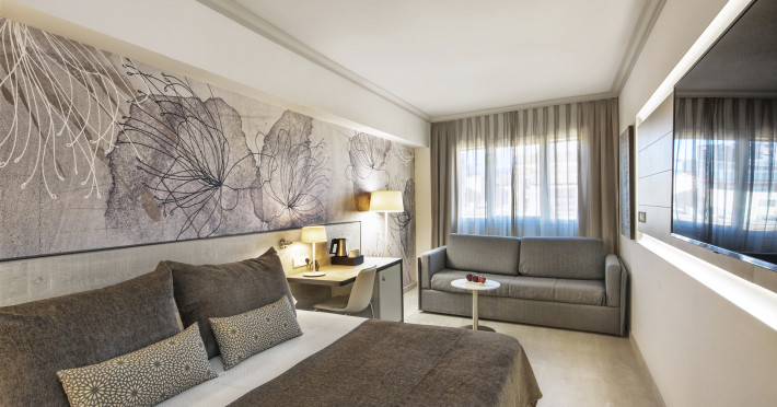 The air-conditioned hotel HOTEL SALLES PERE IV is equipped with a 24h reception, a lobby bar, Wi-Fi, a lift as well as parking spaces (for a fee). In the outdoor area you will find a heated pool. There is also a laundry service. For conventions and other business meetings, the hotel offers a conference area. If you want to explore the holiday region, you can use the car rental service close to the hotel (extra fee). Due to its barrier-free facilities the hotel is also suitable for wheelchair users. Catering Breakfast is offered from the buffet. Sports & Leisure To keep your fitness up on holiday, there is a gym for guests to use. For cyclists there is a bicycle rental. A sauna (extra fee) awaits you in the hotel`s own spa. Let yourself be pampered in the Hamam (extra fee).The air-conditioned hotel HOTEL SALLES PERE IV is equipped with a 24h reception, a lobby bar, Wi-Fi, a lift as well as parking spaces (for a fee). In the outdoor area you will find a heated pool. There is also a laundry service. For conventions and other business meetings, the hotel offers a conference area. If you want to explore the holiday region, you can use the car rental service close to the hotel (extra fee). Due to its barrier-free facilities the hotel is also suitable for wheelchair users. Catering Breakfast is offered from the buffet. Sports & Leisure To keep your fitness up on holiday, there is a gym for guests to use. For cyclists there is a bicycle rental. A sauna (extra fee) awaits you in the hotel`s own spa. Let yourself be pampered in the Hamam (extra fee).