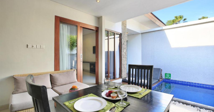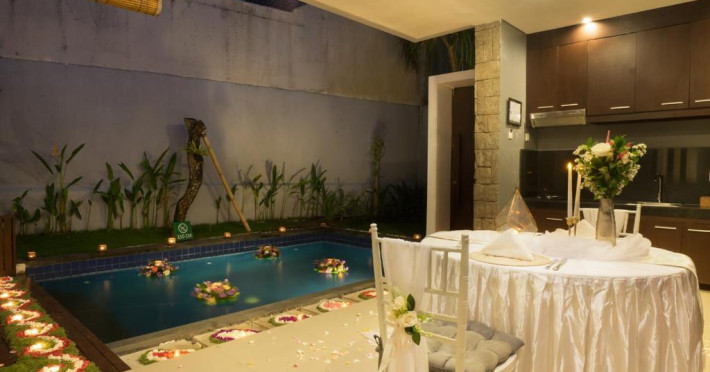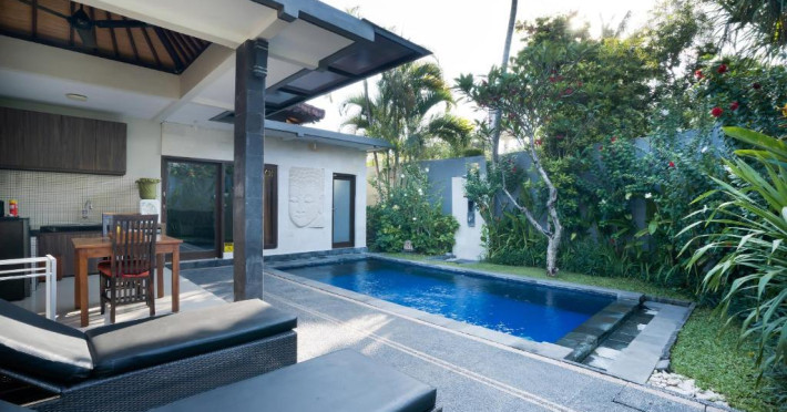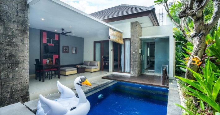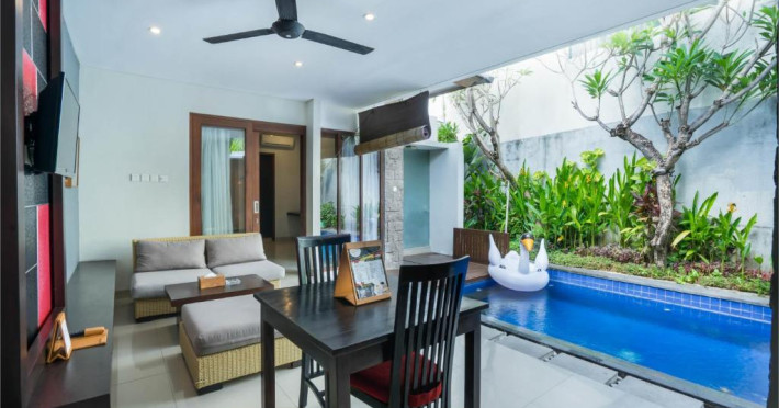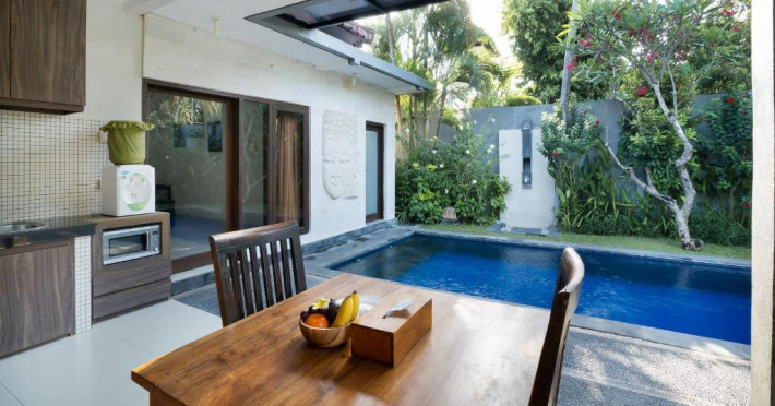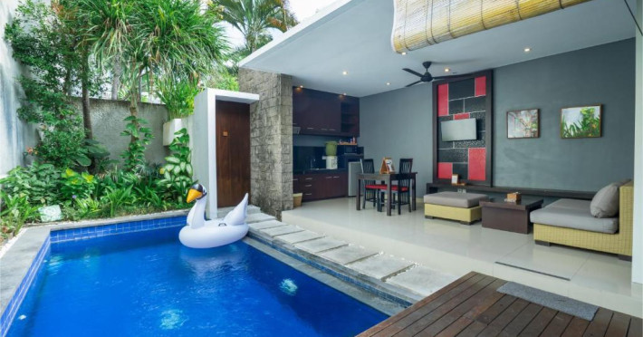 La doar 3 minute de mers pe jos de plaja Seminyak, Samaja Beachside Villas oferă vile moderne cu aer condiționat, piscină privată și chicinetă. Acces WiFi și parcare la proprietate.