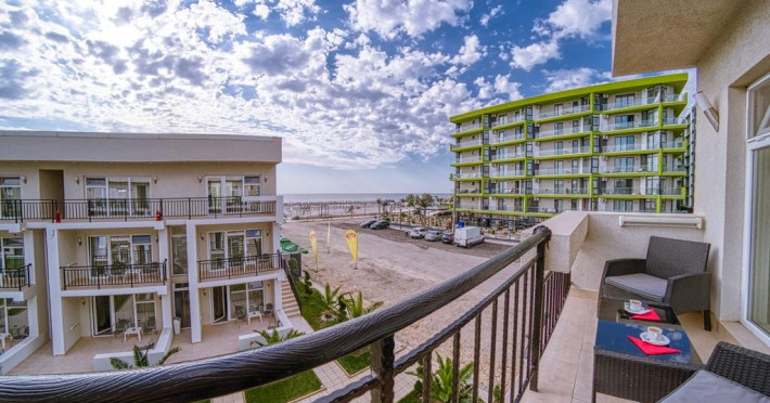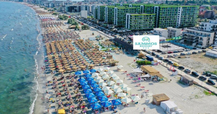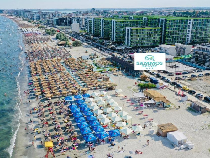 HOTEL SAMMOS BEACH RESORT este situat pe malul marii in Mamaia Nord, in apropiere de Complex Alezzi. Acesta are 2 corpuri a cate 9 camere fiecare.Plaja Kudos este la 5 km de complexul Sammos Beach, iar zona Cazinoului din Mamaia se afl la 8 km de proprietate. Fostul Cazinou din ConstanLLa este la 17 km. Cel mai apropiat aeroport este cel din Mihail Koglniceanu, situat la 31 km de proprietate.