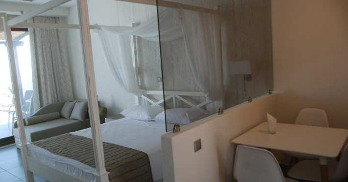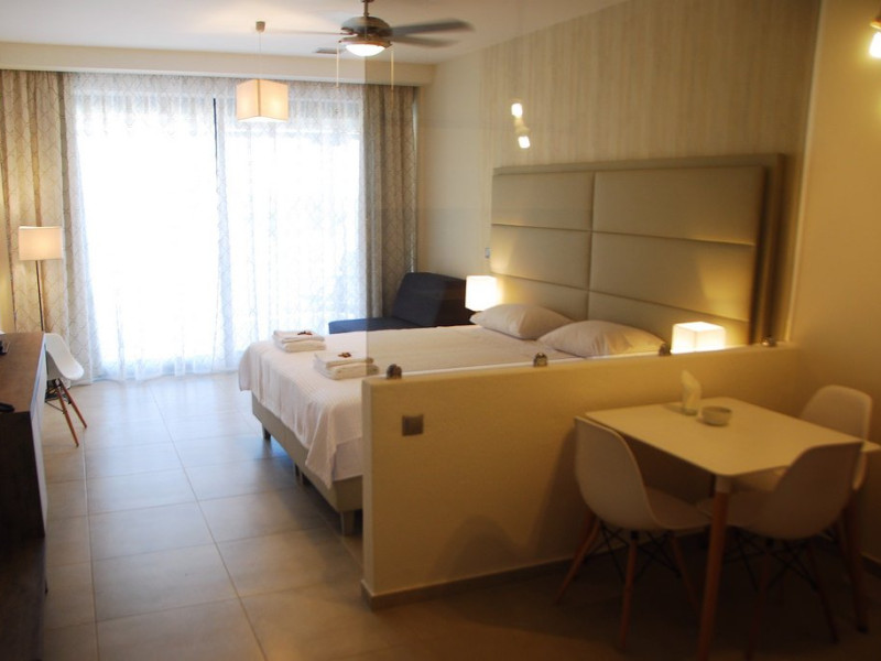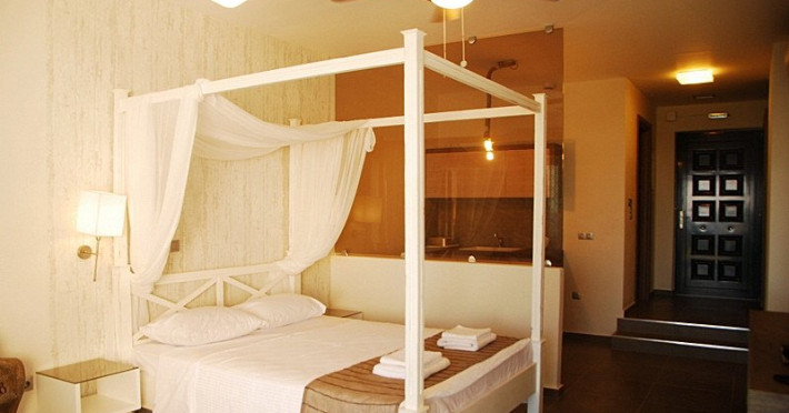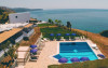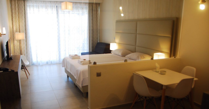 Complexul hotelier detine o piscina de 100 m2, o piscina pentru copii, cada cu hidromasaj in aer liber, mini-sala de gimnastica, loc de joaca pentru copii, facilitati disponibile pentru BBQ (gratar) si o bucatarie comuna pentru prepararea meselor. De asemenea, la Snack Bar-ul existent, veti admira vederea interminabila cu unicul apus de soare, aveend ca orizont insulele Imbros, Limnos, Thassos si Muntele Athos.