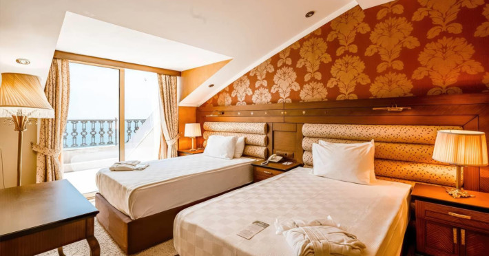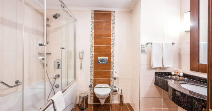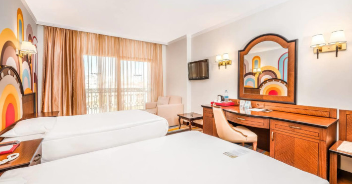 Hotelul este format din clădirea principală, iar cele 290 de camere sunt toate prevazute cu baie cu cadă/duș, uscător pentru păr, produse de toaleta, aer condiționat, seif, mini-bar, telefon, Tv/satelit, facilități pentru cafea si ceai, balcon / terasă.