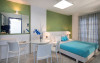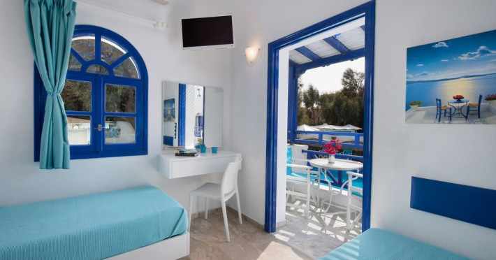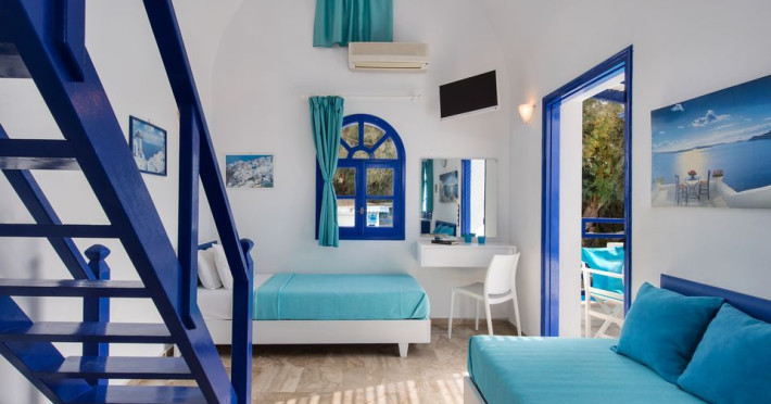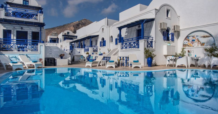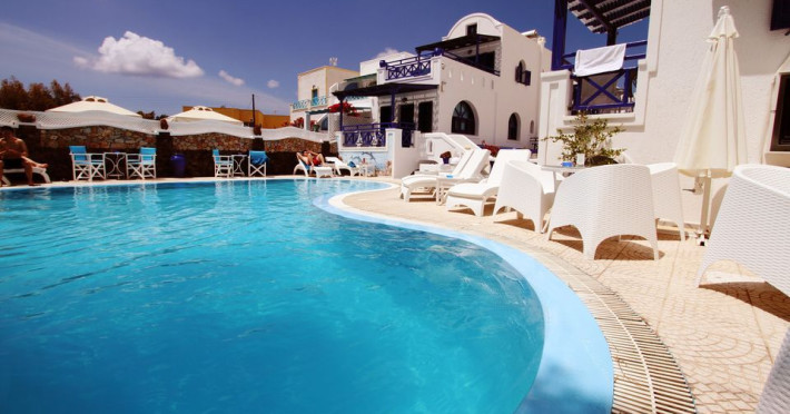 Our hotel was built in the area of Perissa in 2000, and accommodates hundreds of visitors in all its apartments every summer.In this newly built maisonette-style hotel, all the rooms offer comfort combined with the simple Cycladic style you want for your holiday, faithfully maintaining the traditional Cycladic motif. Rooms with a view of the sea, or attic-style rooms make for an unforgettable holiday, combining tranquillity with the best beach in Santorini (20 meters away).15 spacious rooms with balcony, air-conditioning, refrigerator, telephone, television, kitchen and table so that you can also dine in the room.5 semi- basement rooms offering coolness and tranquillity for your holiday. For the more demanding visitors, a pool and bar can be found at the front of our hotel, along with our specialised staff to cover all your daily needs. Our rooms have absolutely everything: air-conditioning, television, refrigerator, kitchen, dining table in your room, as well as kitchen utensils so that you wonât have to bring anything from home.Datorita dinamicitatii domeniului disponibilitatea ofertelor se modifica de la un moment la altul. De aceea ofertele sunt valabile in limita locurilor disponibile. Agentia nu este responsabila pentru eventualele neconcordante care pot aparea intre informatiile privind tarifele si alte detalii din site si informatiile primite in agentie. In aceste cazuri vor avea prioritate, intotdeauna, informatiile primite in agentie.