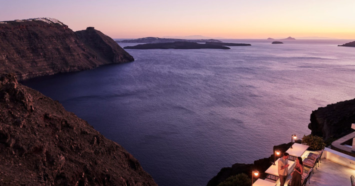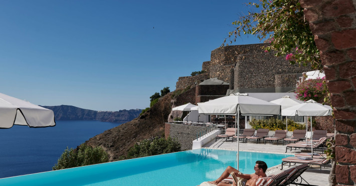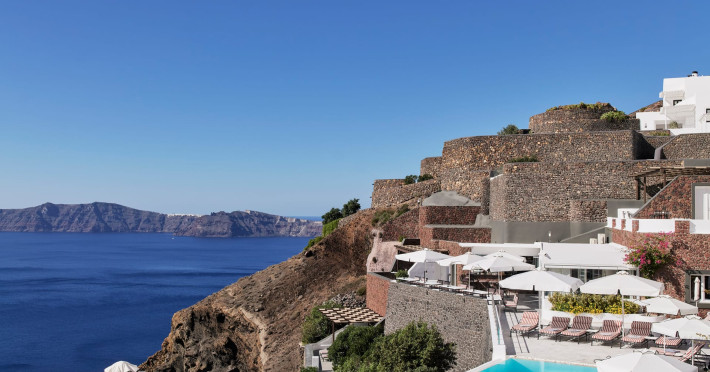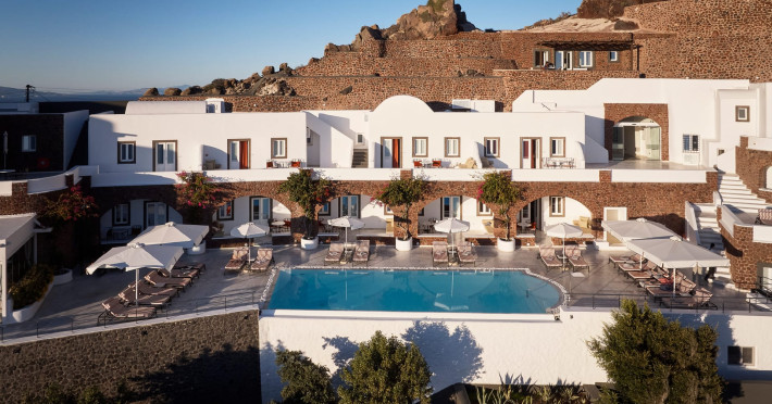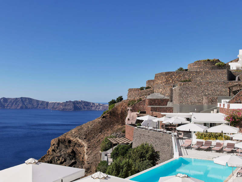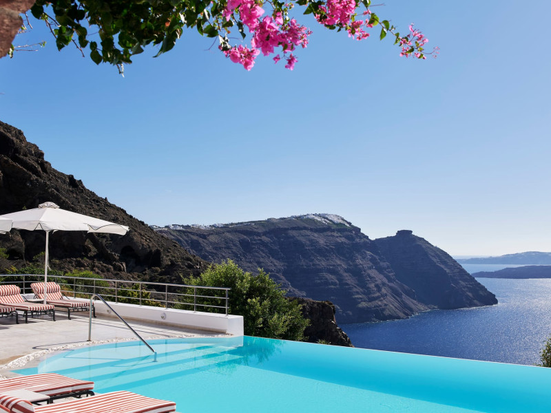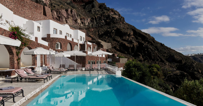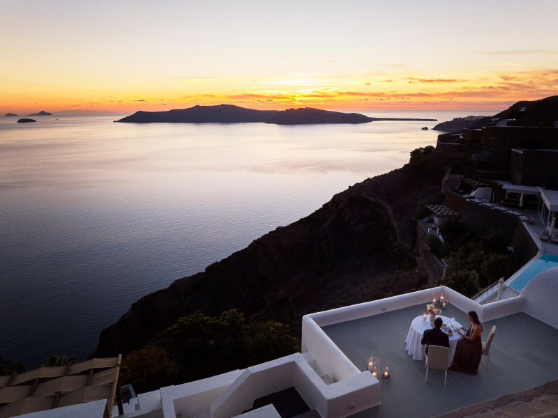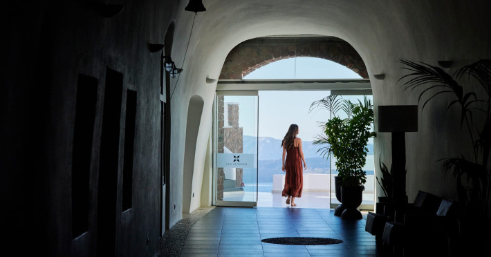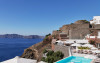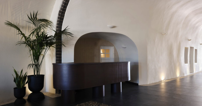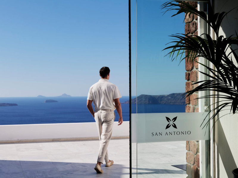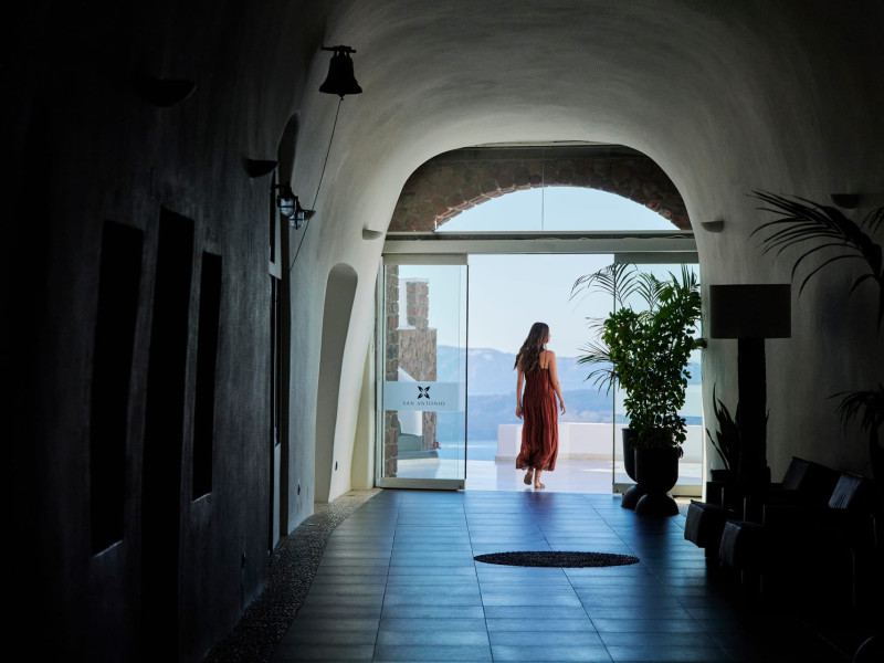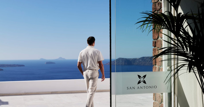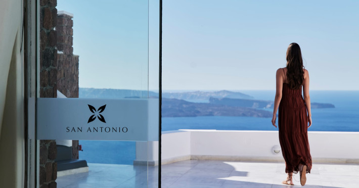 At the narrowest point of Santorini Island, her delicate neck comes into sight as one drives the winding road that leads to Oia, high above sea level. A discreet entrance to a passageway, takes the visitor through the rocks in front of the most amazing scenery. Masses of volcanic rock fused with blooming gardens, the dark blue sea and the light blue sky, lie as precious jewels to be seen and lived only by a few privileged ones: the guests of San Antonio. Twenty six luxurious suites, harmonically crafted into the encompassing interior of the rock, merge into shapes following the earth's own command. Facades covered with red solidified lava and black volcanic stones, outdoor lounges full of comfort and uninterrupted views to the Caldera... The suites at San Antonio Hotel in Santorini are to live romance and fascination; San Antonio heralds a new era in lifestyle culture: cave-luxury. All suites are spacious, with beautiful tiles, furniture and architecture, all inspired by the colors of the earth. The infinity pool is offered in absolute seclusion, embraced by cliffs dressed in black and reddish lava against the blue of the sky and the sea. All around, there is nothing but the beauty of nature. San Antonio's cuisine is strongly influenced by the Mediterranean heritage of Santorini, making use of ingredients only to be found on this island; authentic and subtle flavors served at the Cliff Side Gourmet Restaurant or in private, at the guests suites' verandas. The Relaxation Spa Suite is delved into the rocks: energetic, healing, beautifying… Spa treatments using the transcending power of lava, minerals and volcanic stones are as pure as the surrounding environment. The Hotel is a member of the Small Luxury Hotels of The World.At the narrowest point of Santorini Island, her delicate neck comes into sight as one drives the winding road that leads to Oia, high above sea level. A discreet entrance to a passageway, takes the visitor through the rocks in front of the most amazing scenery. Masses of volcanic rock fused with blooming gardens, the dark blue sea and the light blue sky, lie as precious jewels to be seen and lived only by a few privileged ones: the guests of San Antonio. Twenty six luxurious suites, harmonically crafted into the encompassing interior of the rock, merge into shapes following the earth's own command. Facades covered with red solidified lava and black volcanic stones, outdoor lounges full of comfort and uninterrupted views to the Caldera... The suites at San Antonio Hotel in Santorini are to live romance and fascination; San Antonio heralds a new era in lifestyle culture: cave-luxury. All suites are spacious, with beautiful tiles, furniture and architecture, all inspired by the colors of the earth. The infinity pool is offered in absolute seclusion, embraced by cliffs dressed in black and reddish lava against the blue of the sky and the sea. All around, there is nothing but the beauty of nature. San Antonio's cuisine is strongly influenced by the Mediterranean heritage of Santorini, making use of ingredients only to be found on this island; authentic and subtle flavors served at the Cliff Side Gourmet Restaurant or in private, at the guests suites' verandas. The Relaxation Spa Suite is delved into the rocks: energetic, healing, beautifying… Spa treatments using the transcending power of lava, minerals and volcanic stones are as pure as the surrounding environment. The Hotel is a member of the Small Luxury Hotels of The World.