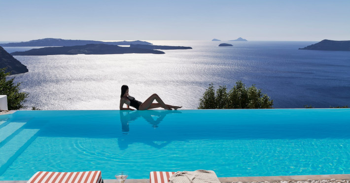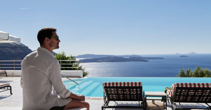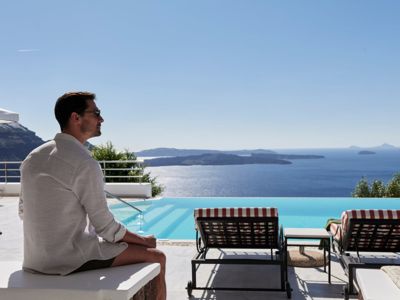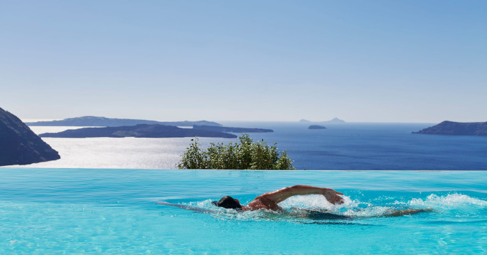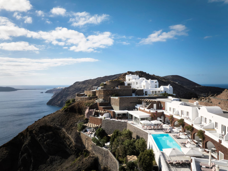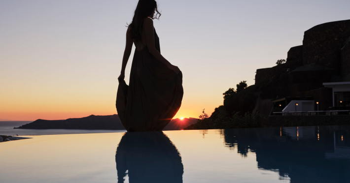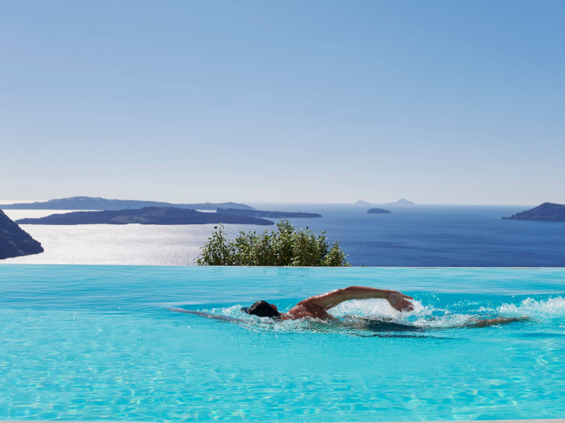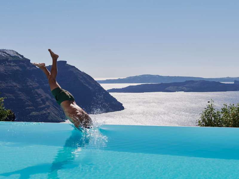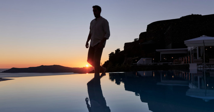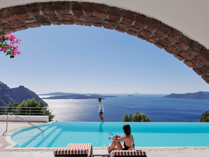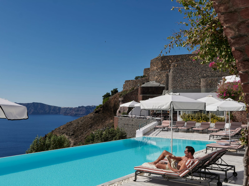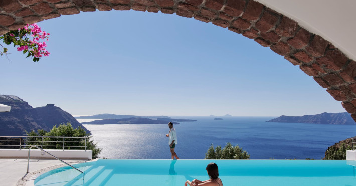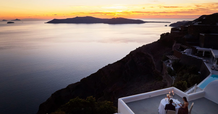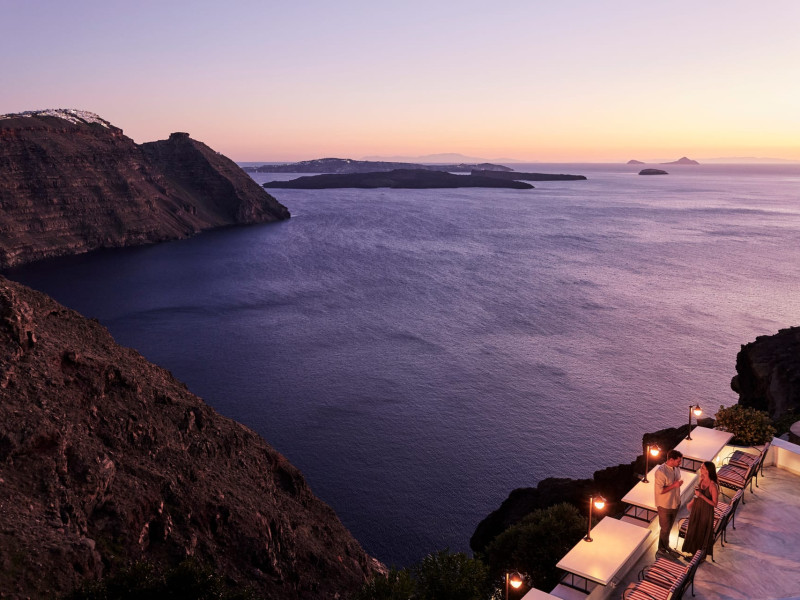 At the narrowest point of Santorini Island, her delicate neck comes into sight as one drives the winding road that leads to Oia, high above sea level. A discreet entrance to a passageway, takes the visitor through the rocks in front of the most amazing scenery. Masses of volcanic rock fused with blooming gardens, the dark blue sea and the light blue sky, lie as precious jewels to be seen and lived only by a few privileged ones: the guests of San Antonio. Twenty six luxurious suites, harmonically crafted into the encompassing interior of the rock, merge into shapes following the earth's own command. Facades covered with red solidified lava and black volcanic stones, outdoor lounges full of comfort and uninterrupted views to the Caldera... The suites at San Antonio Hotel in Santorini are to live romance and fascination; San Antonio heralds a new era in lifestyle culture: cave-luxury. All suites are spacious, with beautiful tiles, furniture and architecture, all inspired by the colors of the earth. The infinity pool is offered in absolute seclusion, embraced by cliffs dressed in black and reddish lava against the blue of the sky and the sea. All around, there is nothing but the beauty of nature. San Antonio's cuisine is strongly influenced by the Mediterranean heritage of Santorini, making use of ingredients only to be found on this island; authentic and subtle flavors served at the Cliff Side Gourmet Restaurant or in private, at the guests suites' verandas. The Relaxation Spa Suite is delved into the rocks: energetic, healing, beautifying… Spa treatments using the transcending power of lava, minerals and volcanic stones are as pure as the surrounding environment. The Hotel is a member of the Small Luxury Hotels of The World.At the narrowest point of Santorini Island, her delicate neck comes into sight as one drives the winding road that leads to Oia, high above sea level. A discreet entrance to a passageway, takes the visitor through the rocks in front of the most amazing scenery. Masses of volcanic rock fused with blooming gardens, the dark blue sea and the light blue sky, lie as precious jewels to be seen and lived only by a few privileged ones: the guests of San Antonio. Twenty six luxurious suites, harmonically crafted into the encompassing interior of the rock, merge into shapes following the earth's own command. Facades covered with red solidified lava and black volcanic stones, outdoor lounges full of comfort and uninterrupted views to the Caldera... The suites at San Antonio Hotel in Santorini are to live romance and fascination; San Antonio heralds a new era in lifestyle culture: cave-luxury. All suites are spacious, with beautiful tiles, furniture and architecture, all inspired by the colors of the earth. The infinity pool is offered in absolute seclusion, embraced by cliffs dressed in black and reddish lava against the blue of the sky and the sea. All around, there is nothing but the beauty of nature. San Antonio's cuisine is strongly influenced by the Mediterranean heritage of Santorini, making use of ingredients only to be found on this island; authentic and subtle flavors served at the Cliff Side Gourmet Restaurant or in private, at the guests suites' verandas. The Relaxation Spa Suite is delved into the rocks: energetic, healing, beautifying… Spa treatments using the transcending power of lava, minerals and volcanic stones are as pure as the surrounding environment. The Hotel is a member of the Small Luxury Hotels of The World.