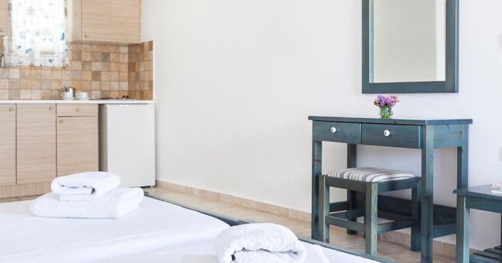 La hotelul de 3 stele, fiecare cameră cu aer condiționat este dotată cu baie privată, dulap și TV cu ecran plat. San Antonio Summer House oferă unele unități cu vedere la mare, iar camerele au balcon. Zilnic, intre orele 08:00 și 10:30, este oferit un mic dejun continental tip bufet cu specialități locale. La cerere, este disponibil și un mic dejun continental devreme, intre orele 07:00 și 08:00. Sezlongurile si umbrelele sunt disponibile gratuit la piscina.