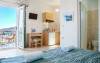Camerele confortabile de la San Lazzaro Apartments au pardoseală de gresie/ marmură, aer condiționat, Tv cu canale prin satelit și seif. Fiecare cameră dispune de cană-fierbător. Oaspeții au acces gratuit la serviciul Wi-fi în camere. În camere există baie cu cadă sau duș ce are în dotare foehn și articole de toaletă gratuite. Unele camere au balcon cu vedere la mare. Curățenia in cameră se face zilnic. Există camere care au zonă de relaxare cu canapea, ceea ce asigură un plus de confort și răsfăț. Există unități de cazare care au chicinetă utilată cu frigider, plită de gătit și ustensile de bucătărie. De asemenea, este disponibilă o zonă de luat masa.