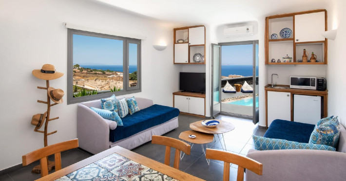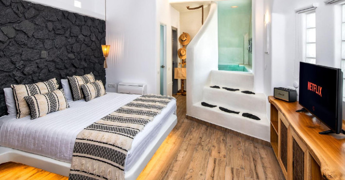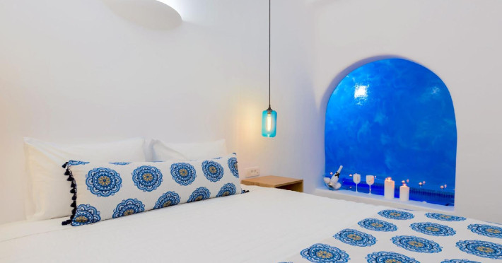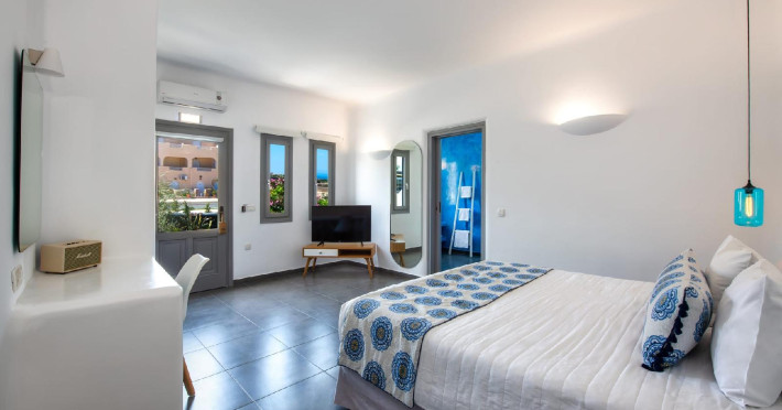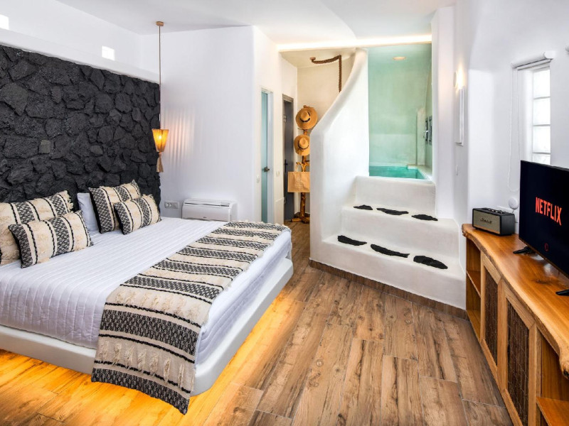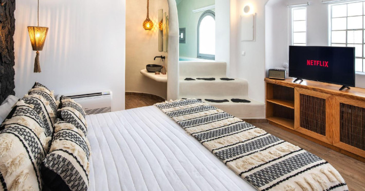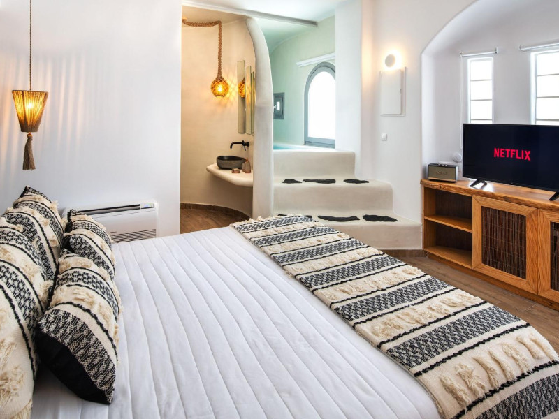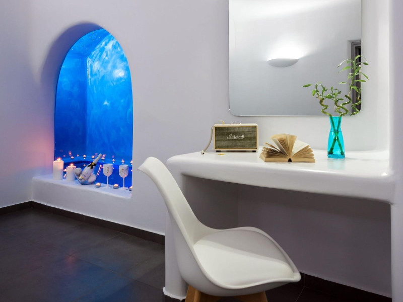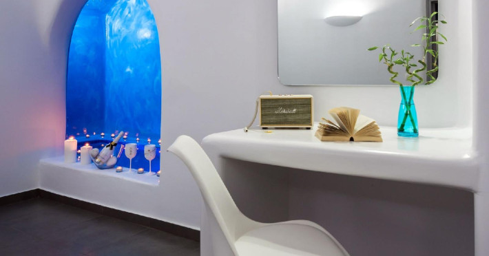 The San Marino Suites is brand new complex of luxurious suites located east of Fira. The suites are built on a slope filled with colorful, traditional houses and churches, in a verdant garden with views to the azure blue of the Aegean Sea. The San Marino Suites is just a few steps away from Santorini’s capital, Fira and features six spacious suites, a range of modern amenities and comfortable facilities. The suites are ideal for couples seeking a romantic getaway, families looking for a secure and comfortable family retreat or even international celebrities casting about for high-end accommodation that ensures privacy and serenity during their stay in Santorini.The San Marino Suites is brand new complex of luxurious suites located east of Fira. The suites are built on a slope filled with colorful, traditional houses and churches, in a verdant garden with views to the azure blue of the Aegean Sea. The San Marino Suites is just a few steps away from Santorini’s capital, Fira and features six spacious suites, a range of modern amenities and comfortable facilities. The suites are ideal for couples seeking a romantic getaway, families looking for a secure and comfortable family retreat or even international celebrities casting about for high-end accommodation that ensures privacy and serenity during their stay in Santorini.