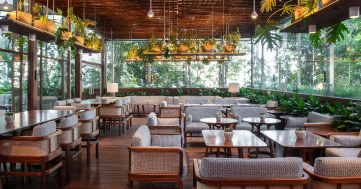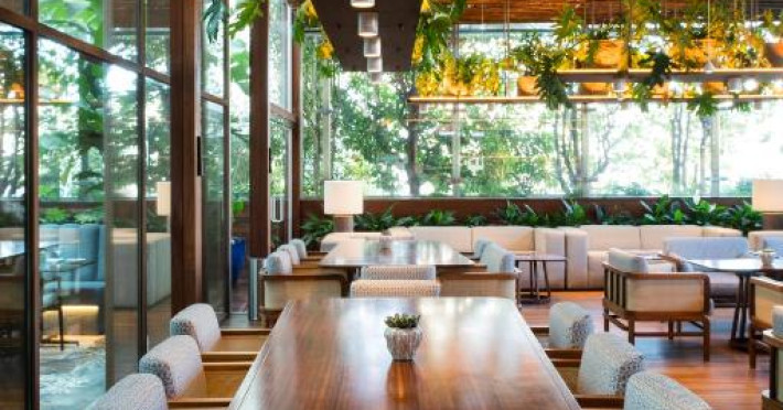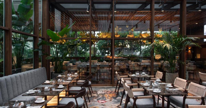Noul restaurant Mediterraneo, cu o atmosferă tropical-colonială și iluminat natural, servește un mic dejun tip bufet, pranzul și cina incantătoare. O experiență de luat masa in cameră este, de asemenea, disponibilă nonstop. Uimitorul bar la modă și terasa acoperită cu o grădină naturală suspendată este spațiul ideal pentru lucru sau pur și simplu pentru relaxare, profitand de meniul de gustări, cu cocktail-uri clasice și la modă.