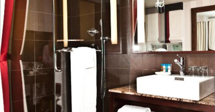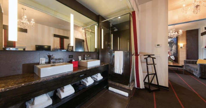 Băile private sunt dotate cu blaturi de marmură și articole de toaletă ecologice.