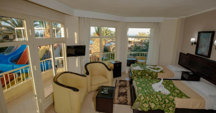 Localizare: hotelul este situat in apropiere de Plaja El Sawaki si la 5 km distanta de Aeroportul International Hurghada. Facilitati hotel: 2 piscine, WiFi gratuit inclus, transfer de la și/sau la aeroport, camere de familie, spa și centru de wellness, sală de fitness, restaurant , bar, zonă de plajă privată. Dotari camere: balcon, vedere la gradina, aer conditionat, baie privata, TV cu ecran plat terasa, minibar, WiFi gratuit. Servicii contra cost: serviciu de transfer, serviciu de curatatorie si calcatorie, snorkelling, scufundari, facilitati sporturi nautice, pescuit, echipament tenis, biliard, masaj, sala fitness, spa si centru wellness, sauna, jacuzzi. IMPORTANT: Descrierea hotelului se bazeaza pe detaliile disponibile la momentul pregatirii tarifelor pentru sezonul turistic ce urmeaza a se desfasura si are caracter pur informativ. Hotelul poate aduce modificari de structura, denumiri camere, tip serivicii incluse/neincluse si altele, fara a notifica in prealabil. Pentru informatiile oficiale va rugam sa consultati website-ul hotelului.Datorita dinamicitatii domeniului disponibilitatea ofertelor se modifica de la un moment la altul. De aceea ofertele sunt valabile in limita locurilor disponibile. Agentia nu este responsabila pentru eventualele neconcordante care pot aparea intre informatiile privind tarifele si alte detalii din site si informatiile primite in agentie. In aceste cazuri vor avea prioritate, intotdeauna, informatiile primite in agentie.