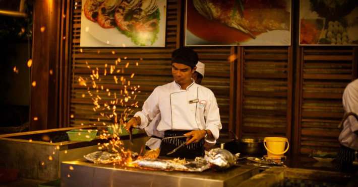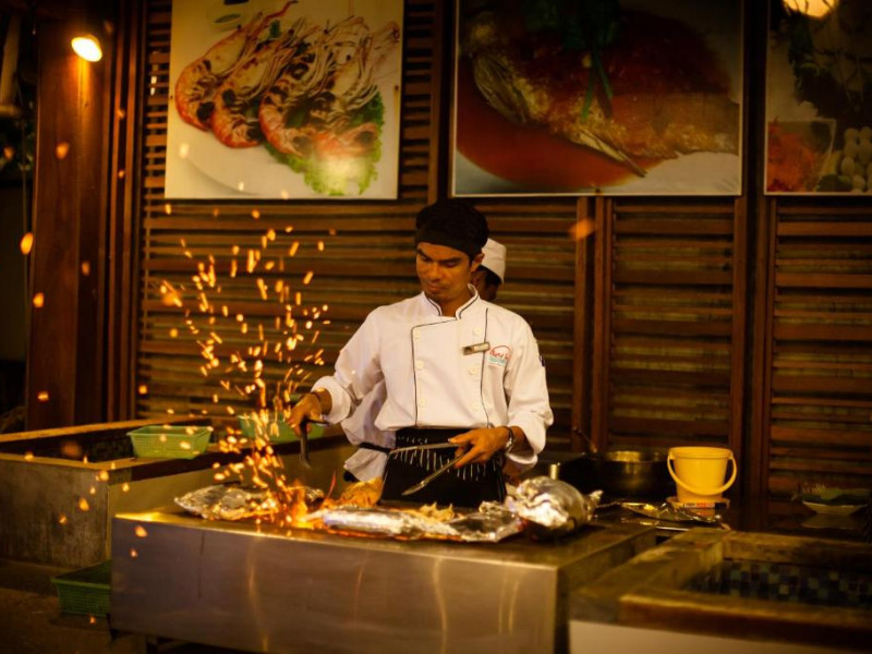 Restaurantul Sand Sea serveste masa la malul mării și oferă o varietate de mancăruri locale și internaționale.