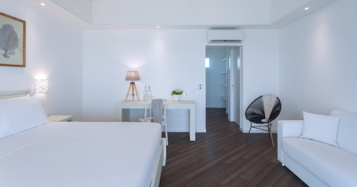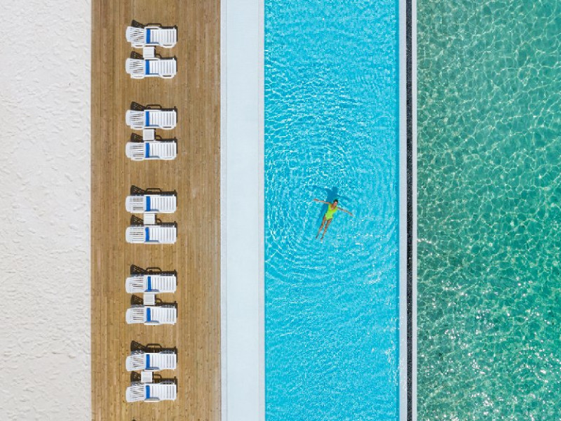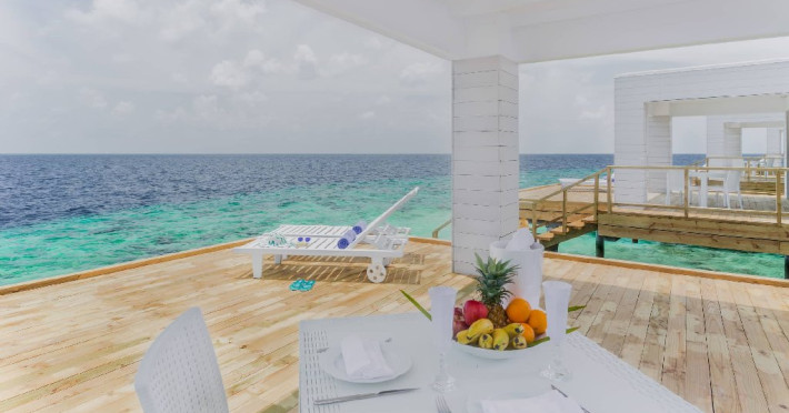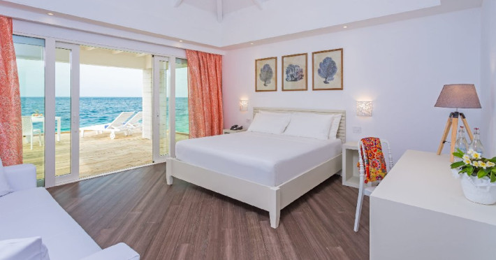 Vila cu piscina si cu terasa privata spatioasa cu zona de luat masa, sezlonguri si acces direct in reciful insulei pune la dispozitie pat king-size si o canapea extensibila. Toate camerele dispun de climatizare, aparat pentru ceai/cafea, Wifi, seif, telefon.
