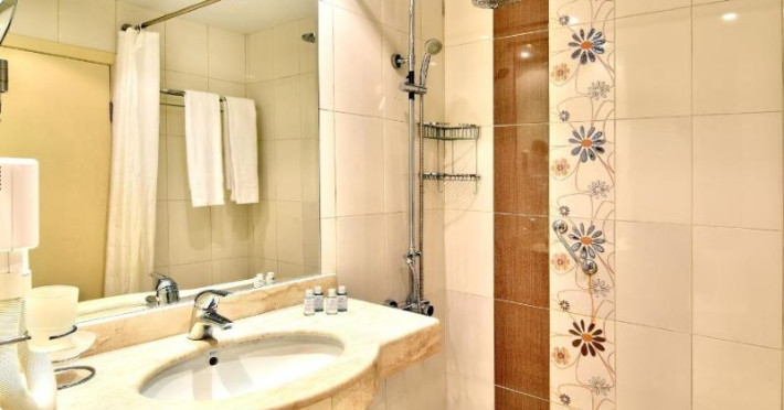 Fiecare cameră este echipată cu aer condiționat, televizor, conexiune Wi-Fi, minibar, telefon, baie cu duș sau cadă, uscător de păr și balcon.