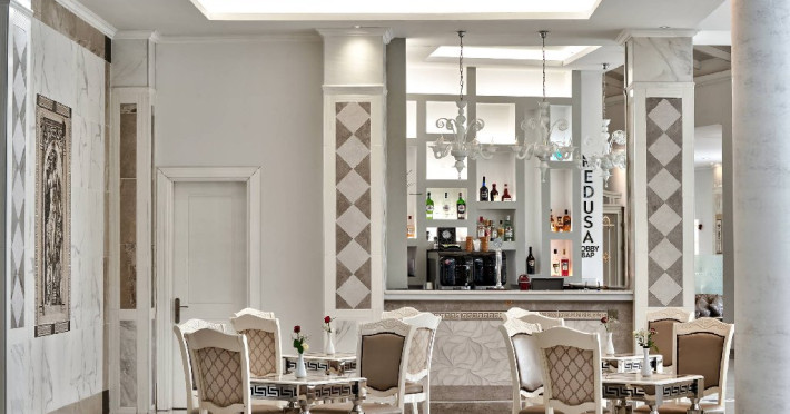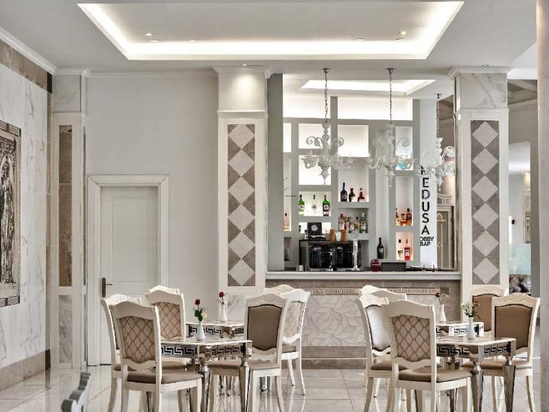 Restaurante: restaurant principal, snack bar, 4 restaurante tematice in hotelul Sandy Beach (international, grill, grecesc, italian rezervare necesara).