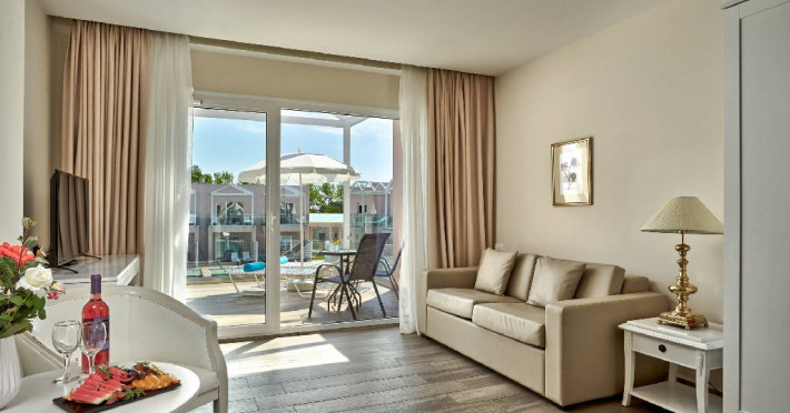 Superior Swim Up max. 3 persoane, acces direct la piscina comuna, parter. Camere single disponibile.