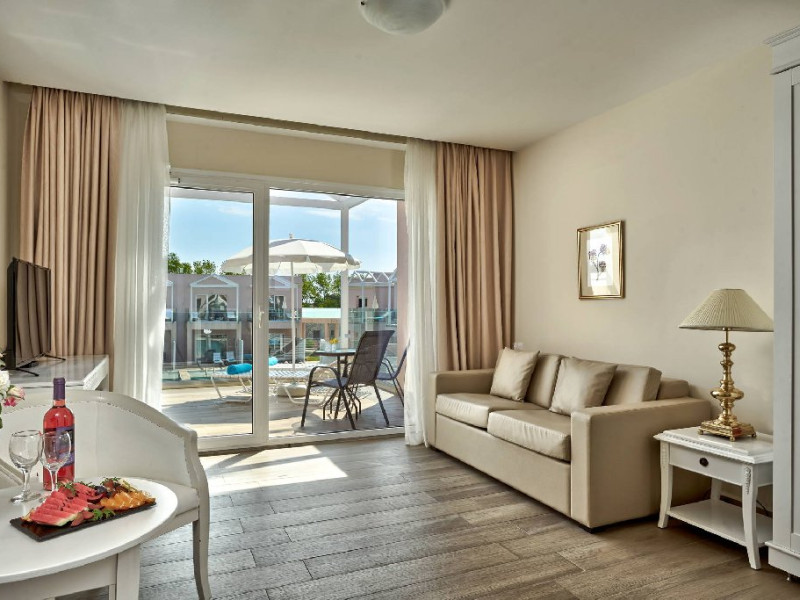 Sandy Villas 5* All InclusivePuncte forte ale ofertei Hotel boutique elegant, cu design glamour, ideal atat pentru cupluri si grupuri de prieteni in cautare de liniste, cat si pentru cei care doresc o vacanta activa. Oaspetii au acces la infrastructura si facilitatile de divertisment ale hotelului Sandy Beach. Camerele sunt spatioase, unele cu acces direct la piscina. Ideal pentru o vacanta relaxanta intr-un cadru modern, aproape de plaja.