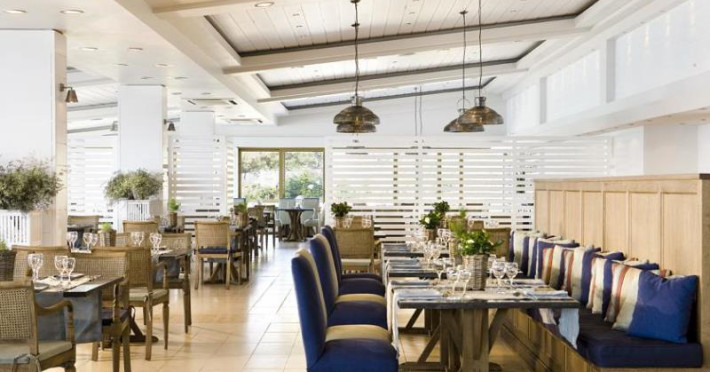 Hotelul dispune de: piscina exterioara, bar pe plaja, lobby bar, bar la piscina, restaurant a la carte, ouzerie, Centru SPA: fitness, sauna, piscina cu sectiune speciala pentru copii, cresa, mini club si club pentru adolescenti, posibilitatea de practicare a sporturilor nautice, tras cu arcul, plimbari cu barca, scubba diving si teren de tenis.