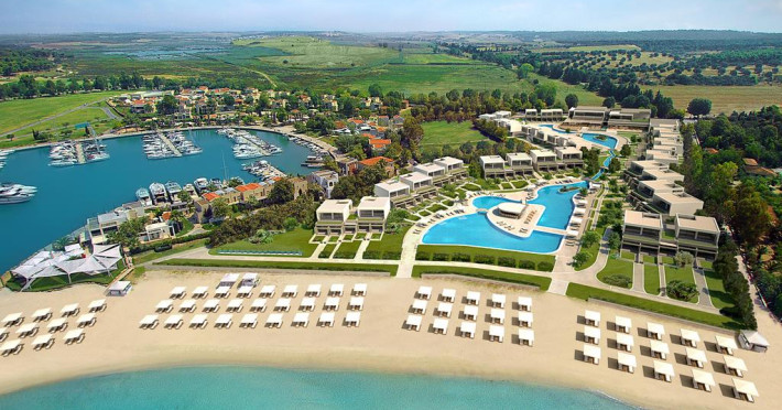 Situat la 50 metri de plaja intr-o rezervatie ecologica de 1000 de acri si cinci mile de plaja de nisip alb din Halkidiki.