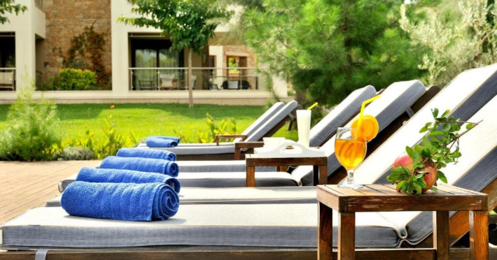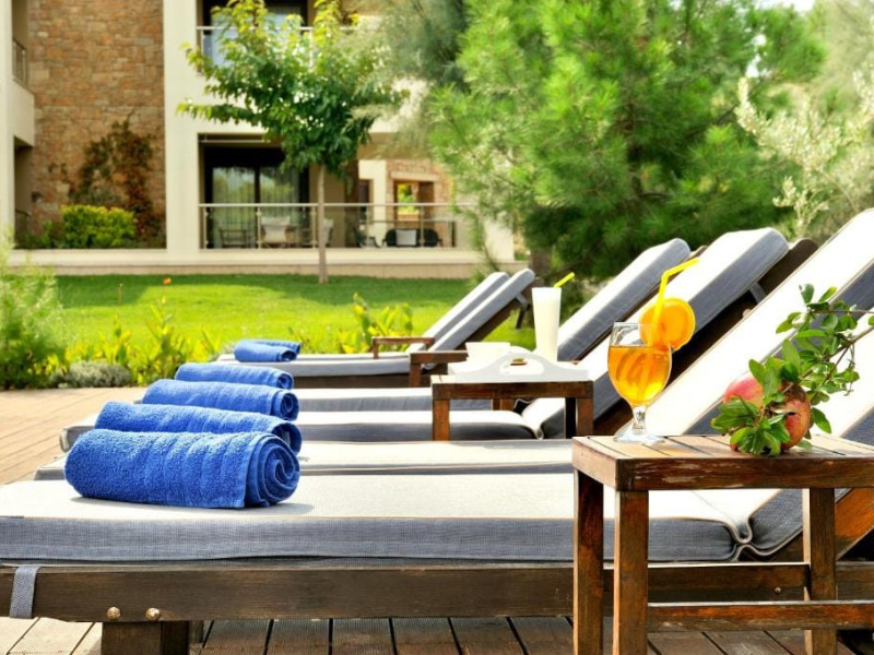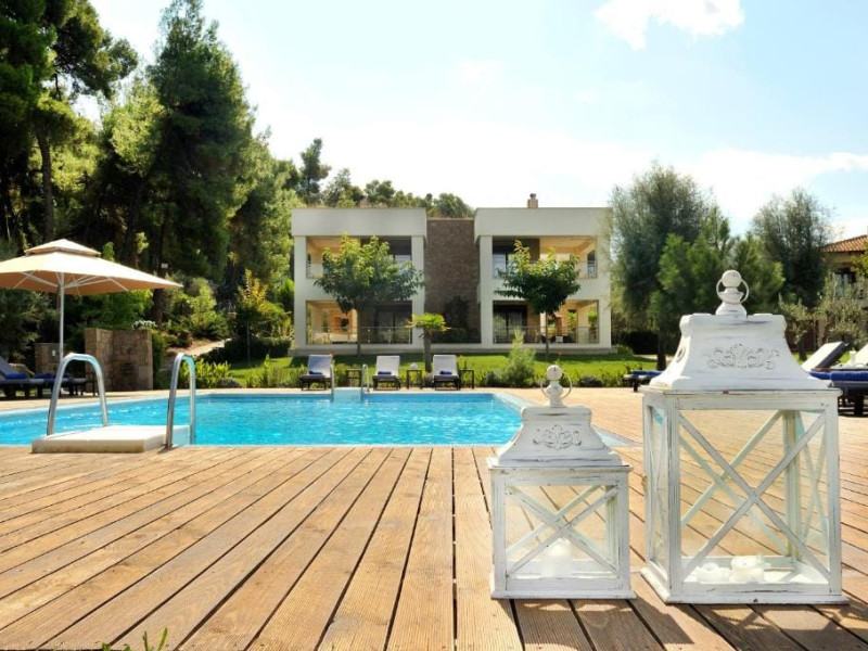Welcome to Sani Polyastron Hotel & Spa: Your Serene Retreat in Halkidiki !Nestled amidst the tranquil pine forests of Sani, Halkidiki, the Sani Polyastron Hotel & Spa offers an idyllic escape tailored to your desires. Our resort harmoniously blends luxury with nature, providing a sanctuary where relaxation and rejuvenation are paramount.Luxurious AccommodationsOur resort features a selection of exquisite villas and suites designed to cater to your comfort:Villa with Garden View: Ideal for families, these two-story villas boast impressive views of the pool, garden, and forest. The ground floor includes a fully equipped kitchen, dining area, and a cosy living space, while the upper floor houses two separate bedrooms and a bathroom.Deluxe Suite: Perfect for couples or small families, these suites offer a luxurious bedroom with a double bed and a living room equipped with a kitchen, dining table, and a comfortable sitting area. Some suites feature balconies or terraces, enhancing your connection with the serene surroundings.Thessaloniki Airport - 69 km Sani Beach - 1.2 km