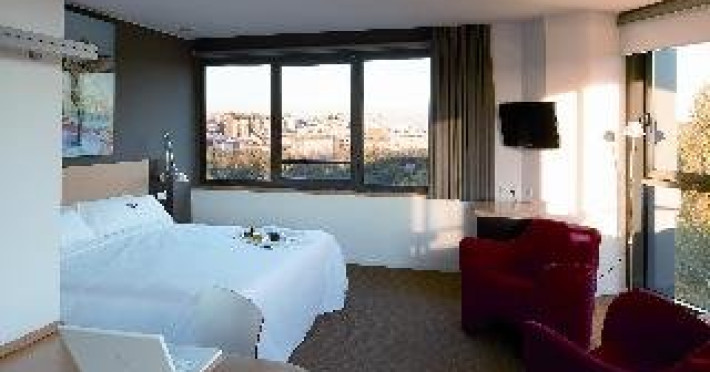The hotel is situated 20 km from Barcelona. Once in Sant Cugat, the hotel is located on the Rambla del Celler, close to the new Town Hall, 500 m from the Ferrocarrils de la Generalitat station, 200 m from the auditorium and 300 m from the monastery. Barcelona Airport is around 26 km away.||This hotel stands out for its avant-garde architecture, pop aesthetic and open spaces, while also attending to its guests#039; every comfort and need. The hotel offers its guests 97 rooms, a restaurant, a lounge area, several meeting rooms, a library, parking, free pillows and daily newspaper services. This design hotel is fully air-conditioned and also includes a lobby with 24-hour reception and check-out service, a hotel safe and lift access to the rooms. The hotel offers a café and bar. Wireless Internet access, room service and laundry service are available, and for an additional fee guests may make use of the car park and garage.||The standard rooms are bright with pleasant views over the historic centre of Sant Cugat and the mountains of Collserola. All of the rooms are decorated with artistic photos and original art works by leading artists. Also, all of the rooms are equipped with a plasma TV with satellite or cable channels, ADSL and wireless Internet connection, a safe, room service menu and a pillow menu. The en suite bathroom offers a shower, bath and hairdryer. The rooms also contain double or king-size beds, a direct dial telephone, an ironing set and individually regulated air conditioning and heating.||The Restaurant Vermell serves as a focal point for hotel guests, although it is also open to the general public. It serves fresh, modern and youthful Mediterranean cuisine and offers an attractive outdoor terrace in summer. The lounge is the perfect meeting point for a drink or a bite to eat. A breakfast buffet is served to guests daily, and lunch and dinner are available as a set menu or à la carte.Datorita dinamicitatii domeniului disponibilitatea ofertelor se modifica de la un moment la altul. De aceea ofertele sunt valabile in limita locurilor disponibile. Agentia nu este responsabila pentru eventualele neconcordante care pot aparea intre informatiile privind tarifele si alte detalii din site si informatiile primite in agentie. In aceste cazuri vor avea prioritate, intotdeauna, informatiile primite in agentie.