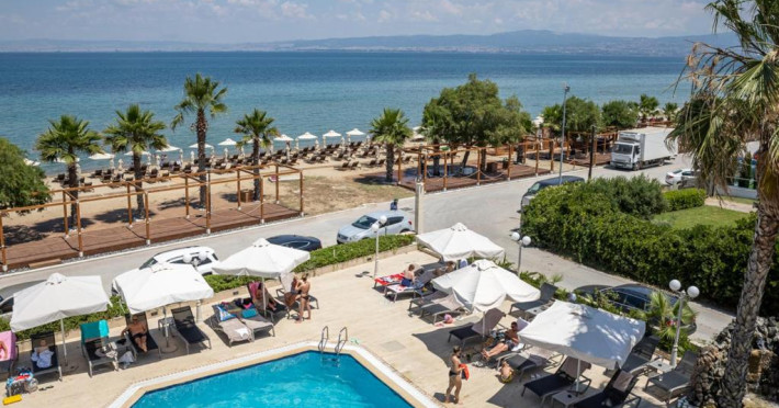 Acest hotel de pe litoral este situat langă plaja cu steag albastru Galaxias, la 19 km de Salonic și la 9 km de Aeroportul Macedonia intre satele Epivates Nei și Agia Triada.