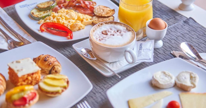 Hotelul are un café-bar si serveste micul dejun tip bufet. Pe timp de noapte este oferit un meniu de gustări.
