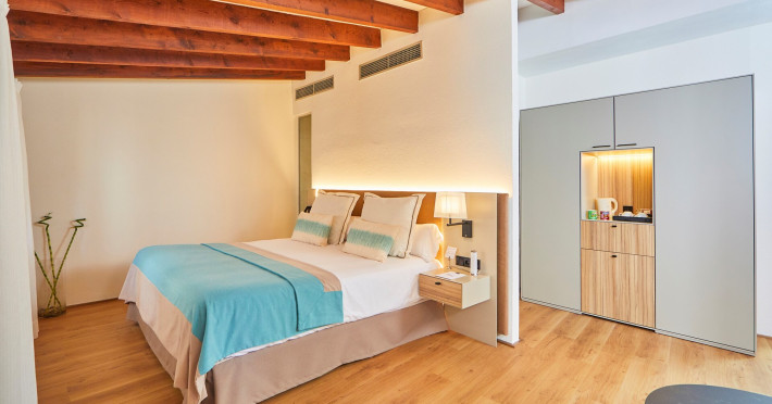 The hotel Santa Clara Urban Hotel & Spa is located approximately 1 km from a beach and about 500 m from the sea. The nearest restaurants and bars can be reached in a few minutes on foot. A supermarket and other shops you reach after around 400 m. On the beach are beach towels available. The air-conditioned, GPS-verified hotel is equipped with a 24h reception (check-in is possible around the clock), a lobby, Wi-Fi, internet access, a lift, a jacuzzi, showers and changing rooms, a first aid kit as well as parking spaces (limited and for a fee). At the pool, pool towels are available for free. Furthermore, you can relax outdoors on the roof terrace. Your valuables can be stored in the hotel safe. In addition, the hotel Santa Clara Urban Hotel & Spa is video-monitored 24h a day. There is also a laundry service available at an additional cost to customers as well as an ironing service. Ironing equipment can also be rented at the hotel for a fee. For your comfort there is a concierge service. If necessary, you can contact the medical centre at any time (for a fee). The energy supply is 220 Volts. If you want to explore the holiday region, you can use the car and motorbike rental service close to the hotel. At the hotel reception, tickets are offered for excursions in the area. In your hotel, a lot of focus is placed on sustainability. This includes a central room air-conditioning and environmentally-friendly cleaning. American Express, Euro/Master Card, Visa and EC cards are accepted as means of payment. Due to its barrier-free facilities , such as a sliding door in the entrance area, a hotel door that can be opened manually, barrier-free entrances, wheelchair accessible rooms, a wheelchair accessible lift, a handrail in the elevator and wheelchair-accessible bathrooms, the hotel is also suitable for wheelchair users. Catering As catering services the hotel offers breakfast only. Breakfast is offered from the buffet. For the meals, there are a restaurant (gluten-free dishes) and a bar as well as the cafeteria. The drinks menu of the hotel includes water, soft drinks, beer and wine. Distances- Discotheque: approximately at 2 km