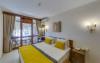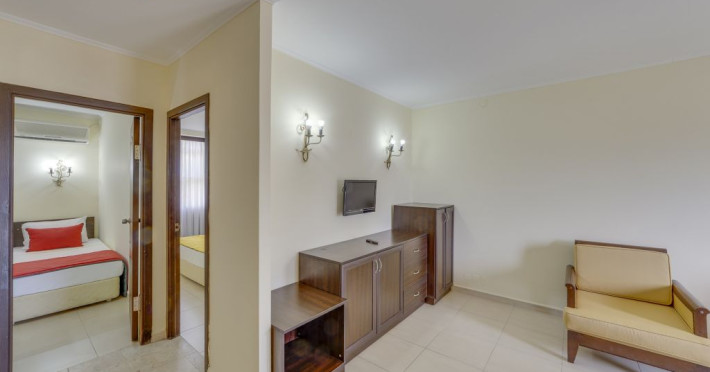 Sunt disponibile 180 camere. Camerele au balcon cu masă și scaune unde pot fi petrecute momente de relaxare. Camerele confortabile de la Santa Family Club sunt dotate cu pardoseală de gresie/ marmură, aer condiționat, Tv și seif. În camere există baie cu cadă sau duș prevăzută cu foehn. Fiecare cameră dispune de minibar. Oaspeții pot solicita serviciul de room service pentru a servi masa sau diverse băuturi. Oaspeții au acces gratuit la serviciul Wi-fi în camere. Curățenia in cameră se face zilnic.