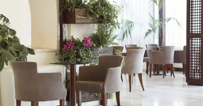 At the beach complex, the 24 hour reception and lobby area is spacious, airy and fresh. It has several sitting areas including a warm and cozy fireplace lounge, internet corner and main bar. The main restaurant (buffet) and its outdoor seating areas are steps from the sea.
