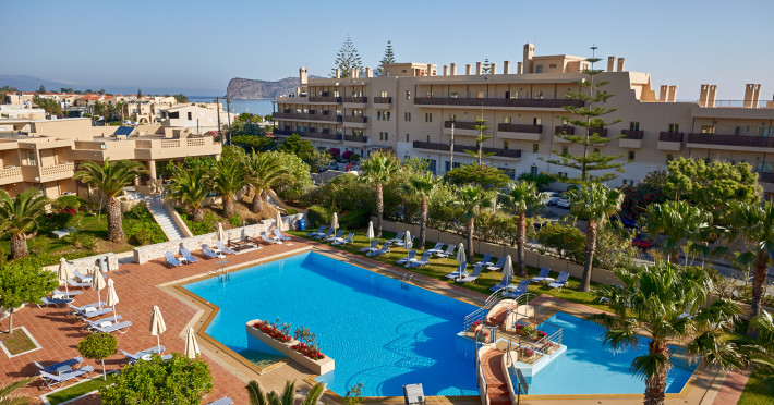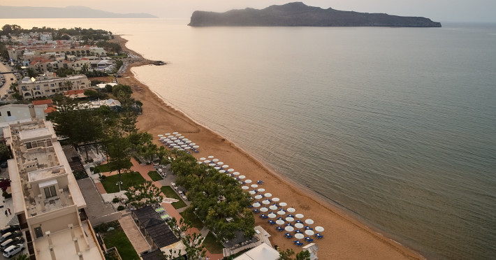 Santa Marina Beach Hotel is ideally located on the long and sandy beach of Agia Marina village, built along the seashore, just 8 kilometers from Chania center.