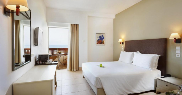 În camere există baie cu cadă sau duș, foehn, articole de toaletă gratuite, precum și halate de baie și papuci. Camerele au balcon cu vedere la mare sau la piscină. Fiecare cameră dispune de minibar. Oaspeții pot solicita serviciul de room service pentru a servi masa sau diverse băuturi. Camerele de la Giannoulis – Santa Marina Beach Hotel sunt dotate cu aer condiționat, Tv cu canale prin satelit și seif. Oaspeții au acces la serviciul Wi-fi în camere contra cost. Curățenia in cameră se face zilnic. Există camere care au zonă de relaxare cu canapea, ceea ce asigură un plus de confort și răsfăț. Proprietatea oferă camere pentru familie cu o suprafață mai mare și un număr mai mare de paturi față de cele standard.