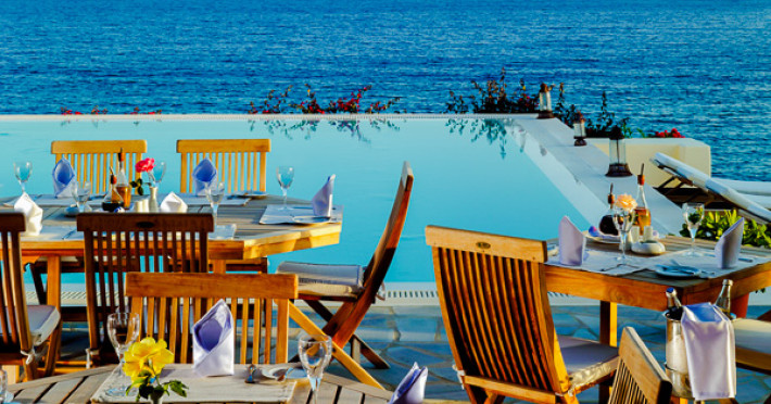 Membru distins al "The Luxury Collection, Starwood Hotels & Resorts", Santa Marina este un hotel de neegalat in insula Mykonos. Hotelul pastreaza stilul traditional cicladic si arhitectura specifica locului, fiind construit precum un sat grecesc deasupra marii.Localizare