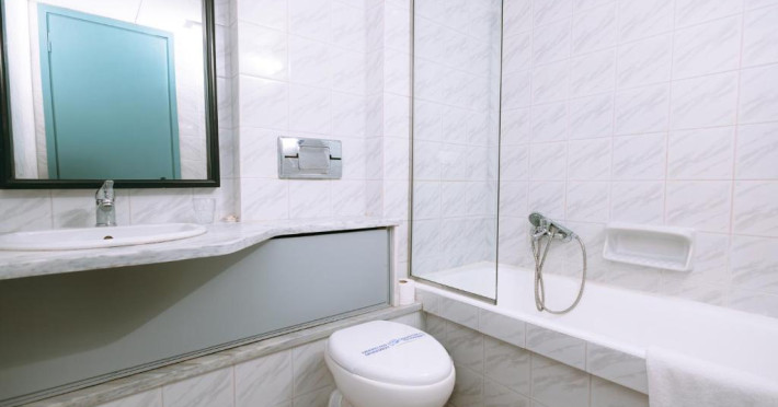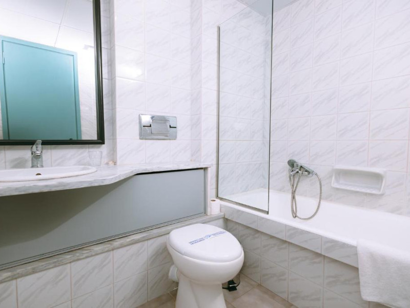 Camerele Hotelului Santa Marina sunt decorate in tonuri de maro și au aer condiționat. Oferă, de asemenea, TV prin satelit, minifrigider și baie privată, cu articole de toaletă gratuite și uscător de păr.