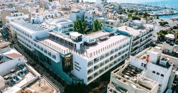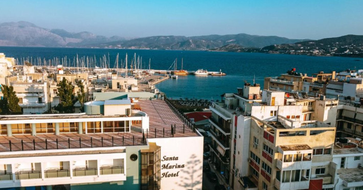 Hotelul Santa Marina se află la mai puțin de 50 m de plaja cu nisip din Agios Nikolaos și oferă o piscină și un restaurant cu terasă mobilată, langă grădină. Accesul WiFi este gratuit la recepție.