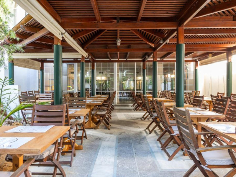 Restaurantul hotelului servește mancăruri grecești și internaționale, pe care oaspeții le pot savura atat in zona de luat masa din interior, cat și langă grădină. Aveți, de asemenea, la dispoziție un bar cu lounge spațios și TV, oferind cafea sau diverse băuturi.