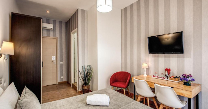 Camerele sunt echipate cu climatizare, un televizor cu ecran plat cu canale prin satelit, un frigider, o cafetieră, un duș, articole de toaletă gratuite și un birou. Camerele de la această pensiune oferă și WiFi gratuit și o baie proprie cu un uscător de păr, iar unele camere sunt echipate cu o vedere la oraș. Unitățile includ un dulap pentru haine și o un ibric electric.