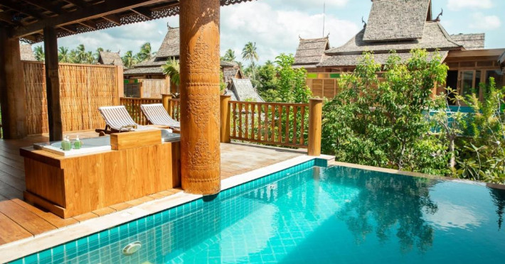 Toate camerele au urmatoarele facilitati: un dormitor dublu cu zona de zi, piscina privata, jacuzzi, pat de zi, sezlonguri, TV LCD cu canale prin satelit si DVD/CD player, facilitati pentru prepararea de ceai si cafea, minibar, aer conditionat si ventilator de tavan, sticle de apa oferite zilnic gratuit, acces la internet Wi-Fi, dus interior si cada separata, uscator de par si articole de baie de lux. Garden Pool are o suprafata de 140 mp, camera se afla la nivelul inferior al unei vilei cu 2 etaje si are intrare separata. Aceasta este perfecta pentru un cuplu sau o familie mica. Oaspetii se pot relaxa intr-o piscina privata sau intr-o cada in aer liber. Camera este decorata cu sculpturi in lemn de tec in stil thailandez si tesaturi pentru a crea o atmosfera orientala. Deluxe Pool este un tip de camera care se afla la nivelul superior al vilei cu 2 etaje, tot cu intrare separate. Camera Deluxe Pool are o terasa spatioasa, o piscina privata si o cada in aer liber.