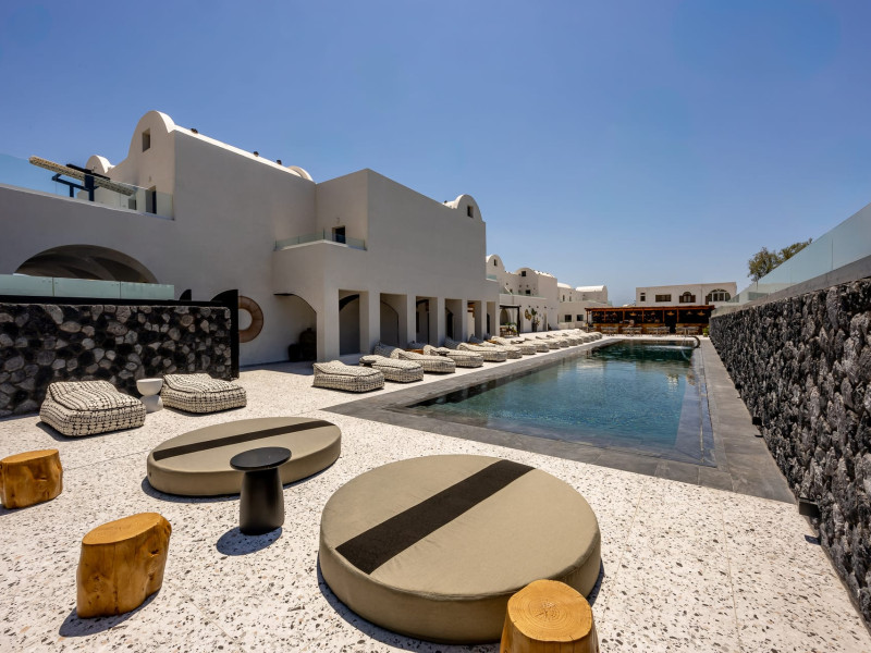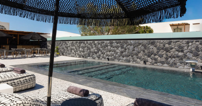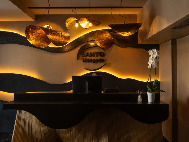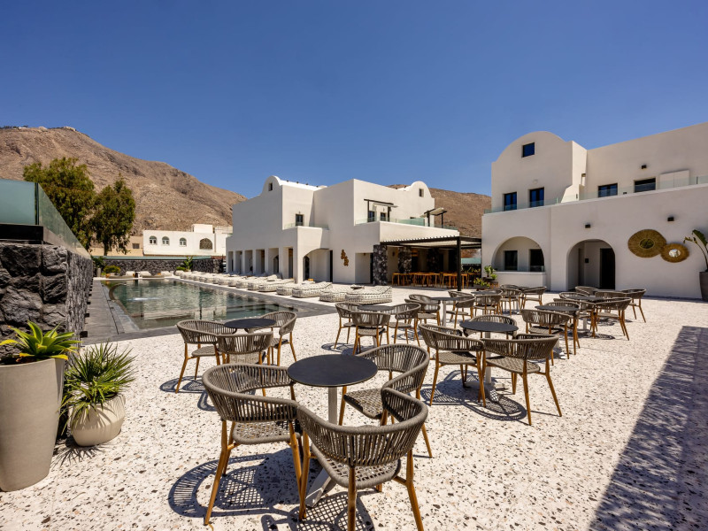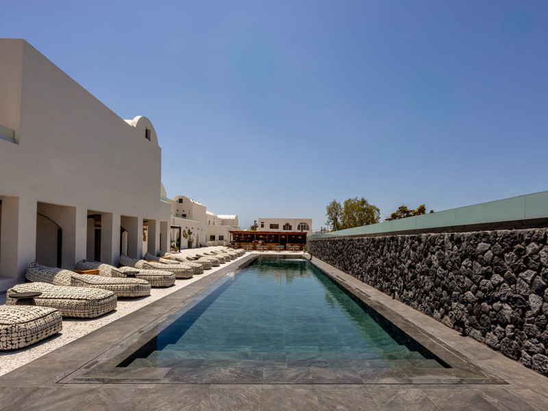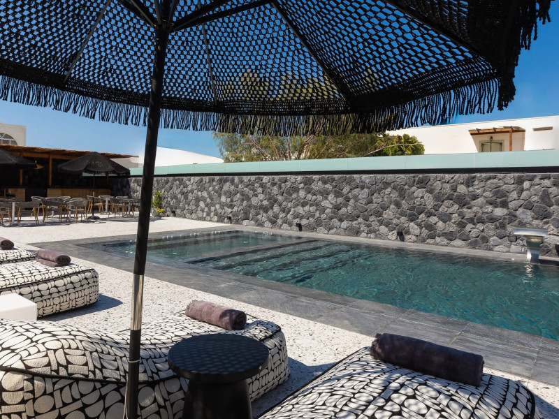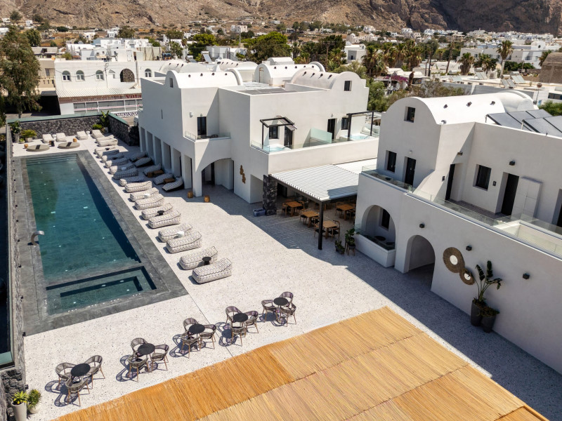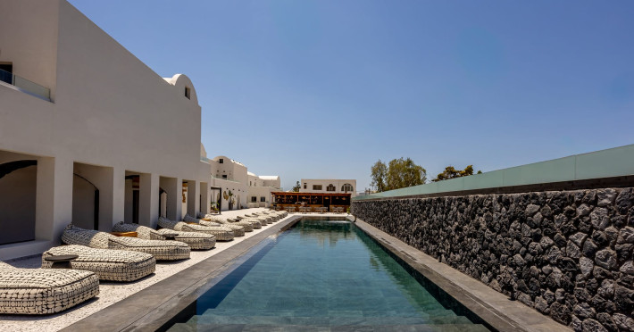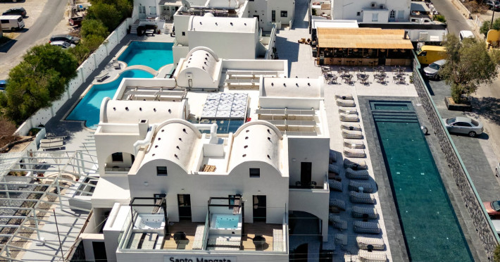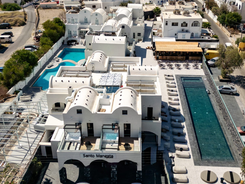 The Santo Mangata 5* boutique hotel is the ideal destination for relaxation in the heart of Perissa, Santorini. Decorated with natural Theraean materials, reflecting the traditional aesthetics of the area, with respect for nature, leaving a minimal ecological footprint, Santo Mangata offers an unforgettable experience in a luxurious, intimate, and green space.Guided by guest service, the Santo Mangata 5* boutique hotel offers all the amenities and services required for the experience of a lifetime.The hotel has 8 types of rooms inspired by the Theraean heritage and decorated with the local colors of the island and the wider area. The black beige of the Theraic land together with the white of the Cyclades dominate the space, while the hotel uses environmentally friendly materials.All rooms offer panoramic views of the famous black beach while the hotel's modern facilities include a restaurant, wellness center, and gym.One of the most impressive features of the hotel is the large 31-meter outdoor swimming pool. It has been designed to reflect the Greek moon, creating an enchanting destination for relaxation and enjoyment. The name of the hotel is inspired by this mirage of the moon in the sea (Santo Mangata in Catalan).The Santo Mangata 5* boutique hotel is the ideal choice for those who desire a unique luxury stay in Santorini, emphasizing traditional aesthetics and absolute relaxation.The Santo Mangata 5* boutique hotel is the ideal destination for relaxation in the heart of Perissa, Santorini. Decorated with natural Theraean materials, reflecting the traditional aesthetics of the area, with respect for nature, leaving a minimal ecological footprint, Santo Mangata offers an unforgettable experience in a luxurious, intimate, and green space.Guided by guest service, the Santo Mangata 5* boutique hotel offers all the amenities and services required for the experience of a lifetime.The hotel has 8 types of rooms inspired by the Theraean heritage and decorated with the local colors of the island and the wider area. The black beige of the Theraic land together with the white of the Cyclades dominate the space, while the hotel uses environmentally friendly materials.All rooms offer panoramic views of the famous black beach while the hotel's modern facilities include a restaurant, wellness center, and gym.One of the most impressive features of the hotel is the large 31-meter outdoor swimming pool. It has been designed to reflect the Greek moon, creating an enchanting destination for relaxation and enjoyment. The name of the hotel is inspired by this mirage of the moon in the sea (Santo Mangata in Catalan).The Santo Mangata 5* boutique hotel is the ideal choice for those who desire a unique luxury stay in Santorini, emphasizing traditional aesthetics and absolute relaxation.