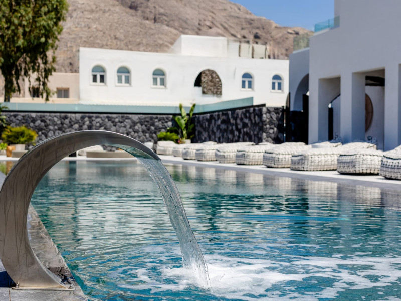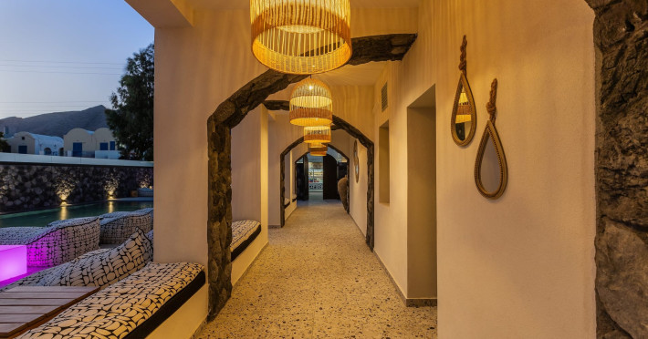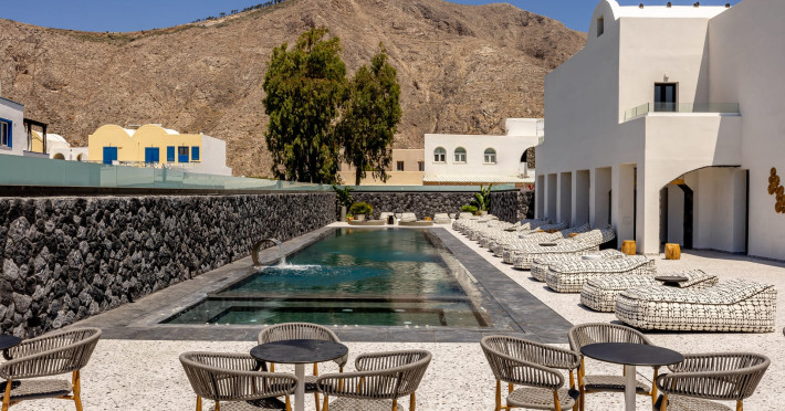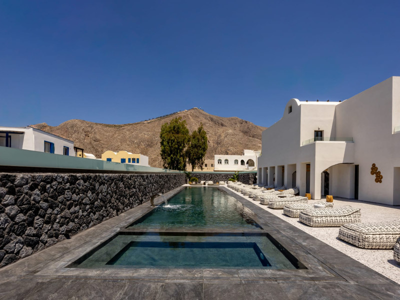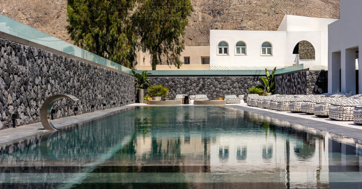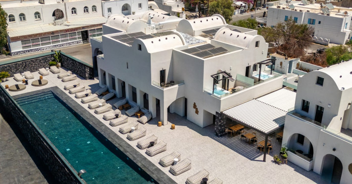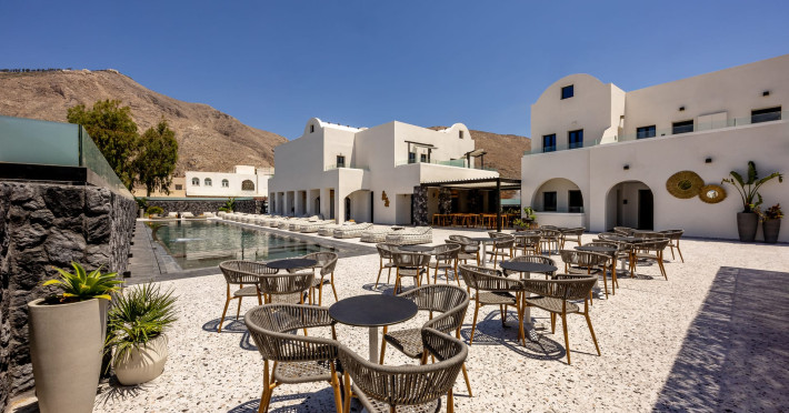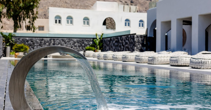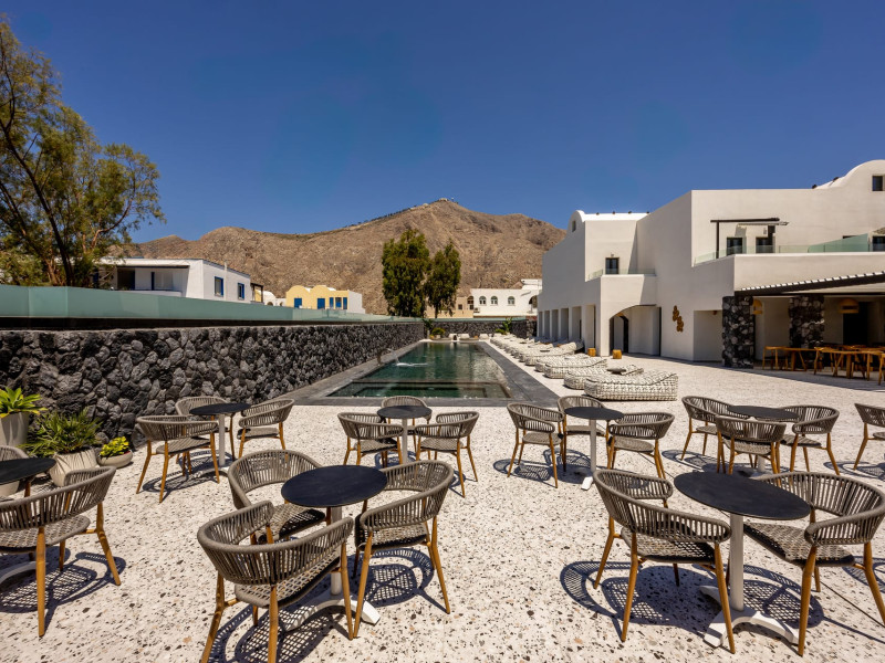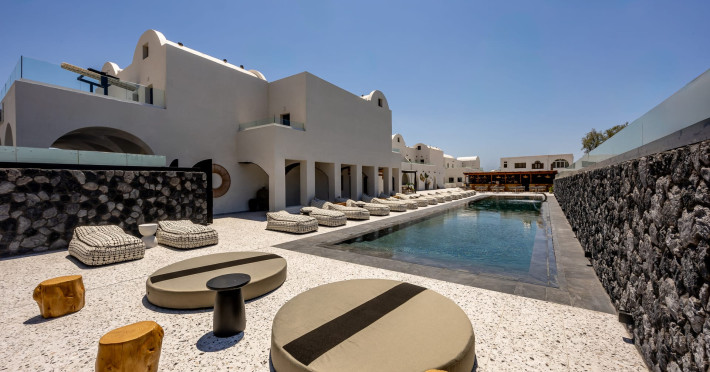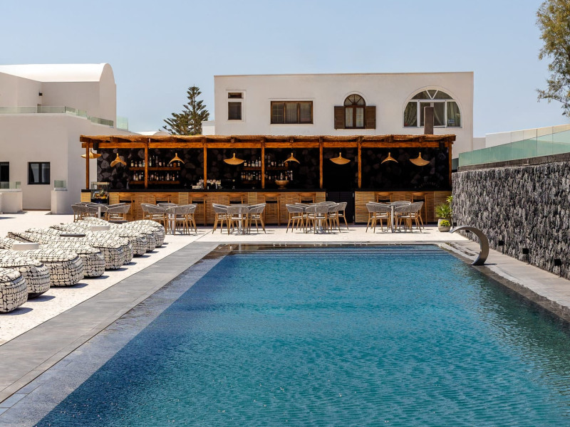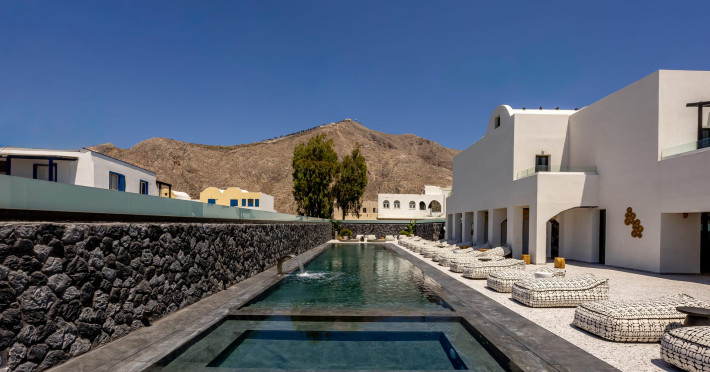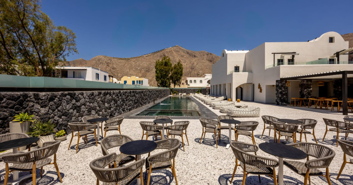 The Santo Mangata 5* boutique hotel is the ideal destination for relaxation in the heart of Perissa, Santorini. Decorated with natural Theraean materials, reflecting the traditional aesthetics of the area, with respect for nature, leaving a minimal ecological footprint, Santo Mangata offers an unforgettable experience in a luxurious, intimate, and green space.Guided by guest service, the Santo Mangata 5* boutique hotel offers all the amenities and services required for the experience of a lifetime.The hotel has 8 types of rooms inspired by the Theraean heritage and decorated with the local colors of the island and the wider area. The black beige of the Theraic land together with the white of the Cyclades dominate the space, while the hotel uses environmentally friendly materials.All rooms offer panoramic views of the famous black beach while the hotel's modern facilities include a restaurant, wellness center, and gym.One of the most impressive features of the hotel is the large 31-meter outdoor swimming pool. It has been designed to reflect the Greek moon, creating an enchanting destination for relaxation and enjoyment. The name of the hotel is inspired by this mirage of the moon in the sea (Santo Mangata in Catalan).The Santo Mangata 5* boutique hotel is the ideal choice for those who desire a unique luxury stay in Santorini, emphasizing traditional aesthetics and absolute relaxation.The Santo Mangata 5* boutique hotel is the ideal destination for relaxation in the heart of Perissa, Santorini. Decorated with natural Theraean materials, reflecting the traditional aesthetics of the area, with respect for nature, leaving a minimal ecological footprint, Santo Mangata offers an unforgettable experience in a luxurious, intimate, and green space.Guided by guest service, the Santo Mangata 5* boutique hotel offers all the amenities and services required for the experience of a lifetime.The hotel has 8 types of rooms inspired by the Theraean heritage and decorated with the local colors of the island and the wider area. The black beige of the Theraic land together with the white of the Cyclades dominate the space, while the hotel uses environmentally friendly materials.All rooms offer panoramic views of the famous black beach while the hotel's modern facilities include a restaurant, wellness center, and gym.One of the most impressive features of the hotel is the large 31-meter outdoor swimming pool. It has been designed to reflect the Greek moon, creating an enchanting destination for relaxation and enjoyment. The name of the hotel is inspired by this mirage of the moon in the sea (Santo Mangata in Catalan).The Santo Mangata 5* boutique hotel is the ideal choice for those who desire a unique luxury stay in Santorini, emphasizing traditional aesthetics and absolute relaxation.