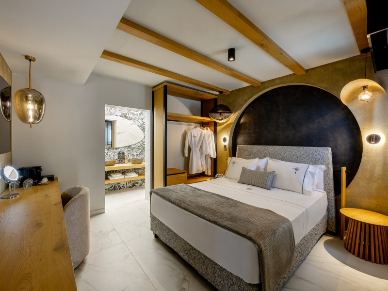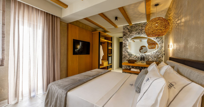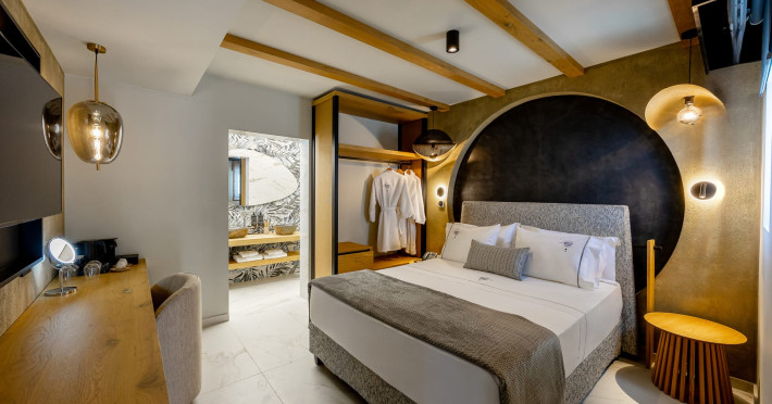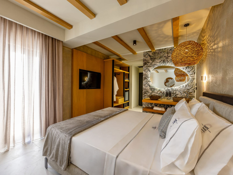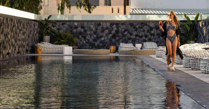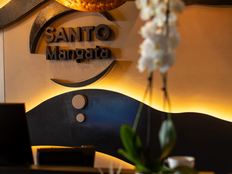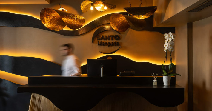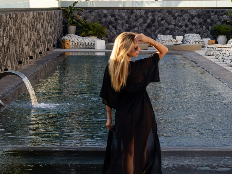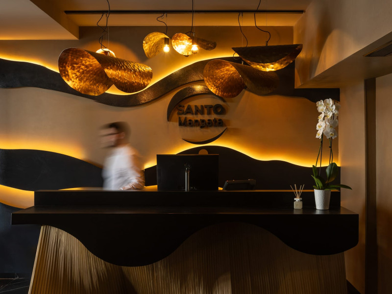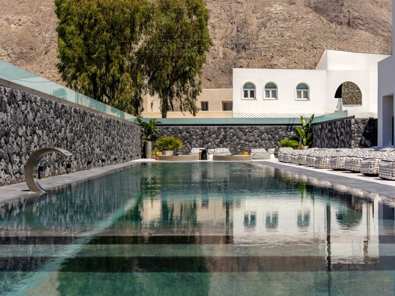 The Santo Mangata 5* boutique hotel is the ideal destination for relaxation in the heart of Perissa, Santorini. Decorated with natural Theraean materials, reflecting the traditional aesthetics of the area, with respect for nature, leaving a minimal ecological footprint, Santo Mangata offers an unforgettable experience in a luxurious, intimate, and green space.Guided by guest service, the Santo Mangata 5* boutique hotel offers all the amenities and services required for the experience of a lifetime.The hotel has 8 types of rooms inspired by the Theraean heritage and decorated with the local colors of the island and the wider area. The black beige of the Theraic land together with the white of the Cyclades dominate the space, while the hotel uses environmentally friendly materials.All rooms offer panoramic views of the famous black beach while the hotel's modern facilities include a restaurant, wellness center, and gym.One of the most impressive features of the hotel is the large 31-meter outdoor swimming pool. It has been designed to reflect the Greek moon, creating an enchanting destination for relaxation and enjoyment. The name of the hotel is inspired by this mirage of the moon in the sea (Santo Mangata in Catalan).The Santo Mangata 5* boutique hotel is the ideal choice for those who desire a unique luxury stay in Santorini, emphasizing traditional aesthetics and absolute relaxation.The Santo Mangata 5* boutique hotel is the ideal destination for relaxation in the heart of Perissa, Santorini. Decorated with natural Theraean materials, reflecting the traditional aesthetics of the area, with respect for nature, leaving a minimal ecological footprint, Santo Mangata offers an unforgettable experience in a luxurious, intimate, and green space.Guided by guest service, the Santo Mangata 5* boutique hotel offers all the amenities and services required for the experience of a lifetime.The hotel has 8 types of rooms inspired by the Theraean heritage and decorated with the local colors of the island and the wider area. The black beige of the Theraic land together with the white of the Cyclades dominate the space, while the hotel uses environmentally friendly materials.All rooms offer panoramic views of the famous black beach while the hotel's modern facilities include a restaurant, wellness center, and gym.One of the most impressive features of the hotel is the large 31-meter outdoor swimming pool. It has been designed to reflect the Greek moon, creating an enchanting destination for relaxation and enjoyment. The name of the hotel is inspired by this mirage of the moon in the sea (Santo Mangata in Catalan).The Santo Mangata 5* boutique hotel is the ideal choice for those who desire a unique luxury stay in Santorini, emphasizing traditional aesthetics and absolute relaxation.