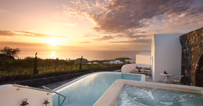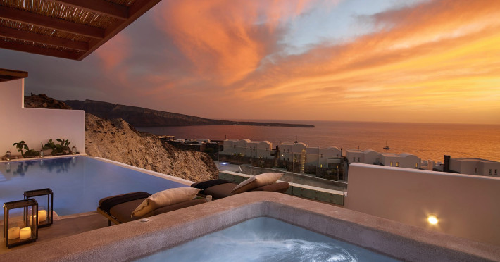 Elegant, sophisticated, yet authentic, living is at the core of your stay at Santo Pure Oia Suites & Villas. Located on the outskirts of Oia’s scenic village, overlooking the expansive Aegean Sea and the island’s iconic sunsets, the feeling of space, serenity, and pure relaxation washes over you from the moment you arrive. Separated into six sprawling neighborhoods with Mediterranean gardens centered around six pools, Santo Pure, with 83 suites and 2 villas, resembles a typical Santorinian village, blending traditional Cycladic architecture with contemporary lava-black and white tones. Santo Pure Oia Suites & Villas, with the concept of Celebrating Life, is an open embrace of Santorini and its essence. Here, authentic experiences, togetherness, and passion intertwine with nature and locality, offering discerning travelers the joy of sharing, exploring, and living every moment to the fullest.Elegant, sophisticated, yet authentic, living is at the core of your stay at Santo Pure Oia Suites & Villas. Located on the outskirts of Oia’s scenic village, overlooking the expansive Aegean Sea and the island’s iconic sunsets, the feeling of space, serenity, and pure relaxation washes over you from the moment you arrive. Separated into six sprawling neighborhoods with Mediterranean gardens centered around six pools, Santo Pure, with 83 suites and 2 villas, resembles a typical Santorinian village, blending traditional Cycladic architecture with contemporary lava-black and white tones. Santo Pure Oia Suites & Villas, with the concept of Celebrating Life, is an open embrace of Santorini and its essence. Here, authentic experiences, togetherness, and passion intertwine with nature and locality, offering discerning travelers the joy of sharing, exploring, and living every moment to the fullest.