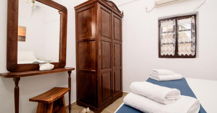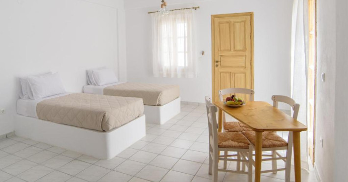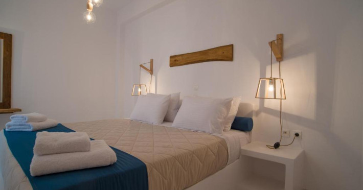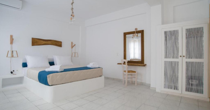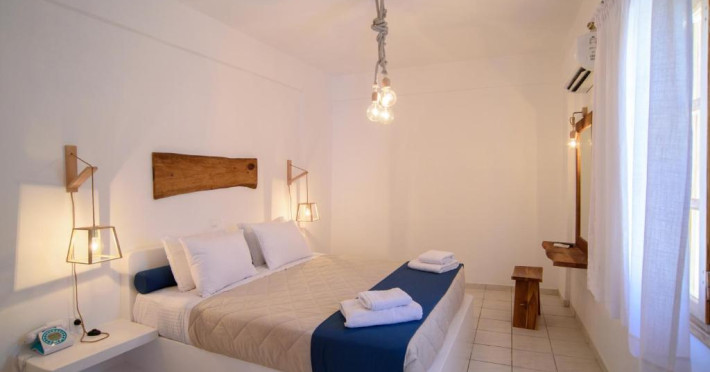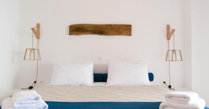 Suitele și studiourile de la Crystal Blue au TV cu ecran plat cu canale prin satelit, aer condiționat, paturi incorporate, pereți zugrăviți in alb și mobilier bine ales. Anumite unități includ o zonă de relaxare, iar unele sunt prevăzute cu balcon sau terasă. Pentru un plus de confort, se oferă halate de baie si papuci.