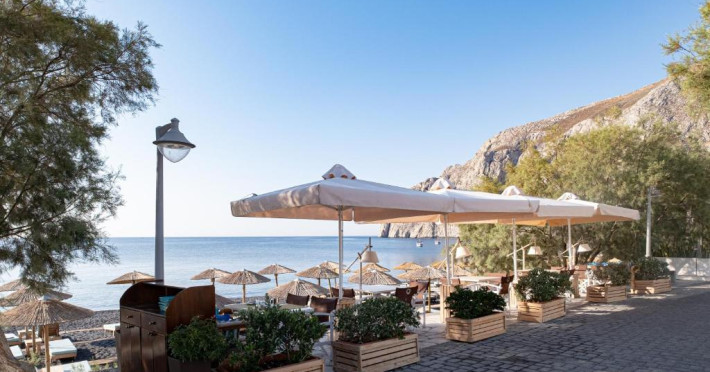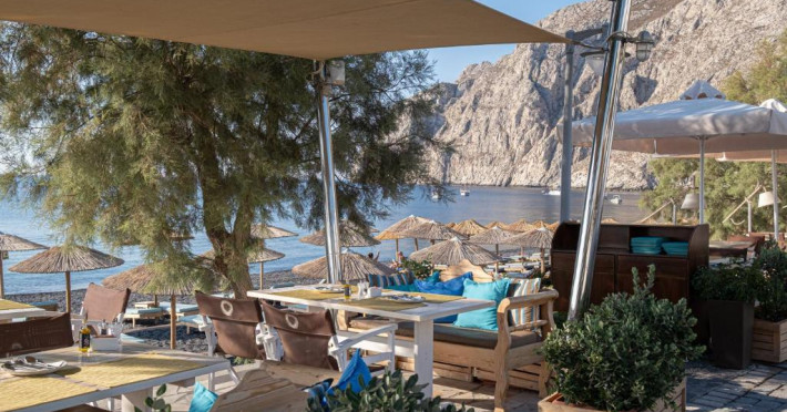 Situat chiar pe plaja cu nisip negru din Kamari, Santorini Crystal Blue este o proprietate construită in mod tradițional, cu piscină in aer liber și un restaurant mediteranean, cu vedere directă la Marea Egee. Proprietatea oferă unități de cazare decorate elegant, cu WiFi gratuit.