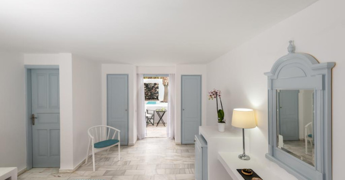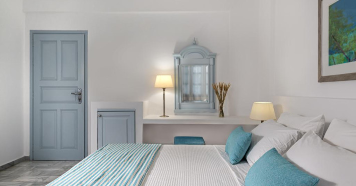 Sunt disponibile 59 camere. Un minibar și o mașină pentru preparare cafea sau ceai se află în fiecare cameră. Oaspeții pot solicita serviciul de room service pentru a servi masa sau diverse băuturi. Unele camere au balcon, cu vedere la piscină, unde oaspeții se pot relaxa în voie. Camerele luminoase de la Santorini Kastelli Resort sunt dotate cu aer condiționat și Tv cu canale prin satelit. În camere există baie cu cadă sau duș prevăzută cu foehn. Curățenia in cameră se face zilnic. Proprietatea oferă camere pentru familie cu o suprafață mai mare și un număr mai mare de paturi față de cele standard. Se pot rezerva de asemenea camere pentru nefumători.