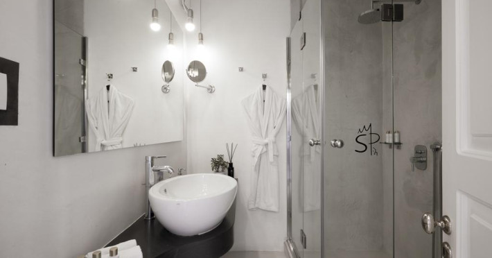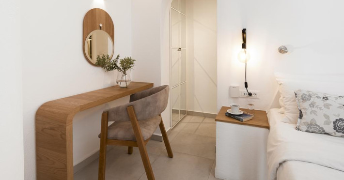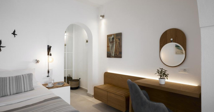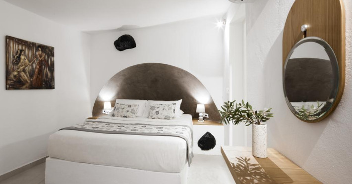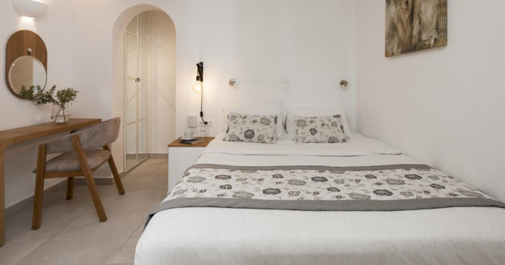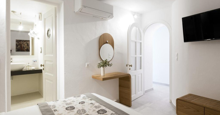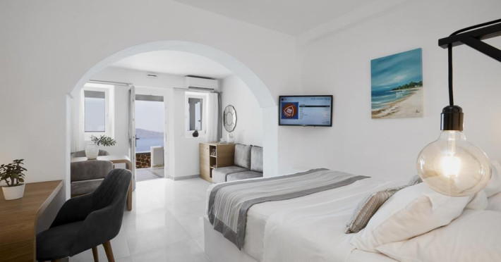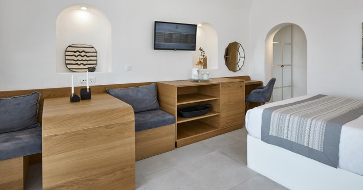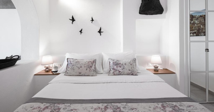 Sunt disponibile 19 camere. Camerele luminoase de la Santorini Princess Luxury Spa sunt dotate cu aer condiționat și Tv cu canale prin satelit. Fiecare cameră dispune de un aparat pentru preparare cafea sau ceai. Oaspeții pot solicita serviciul de room service pentru a servi masa sau diverse băuturi. Unele camere au balcon cu vedere la mare, unde oaspeții pot admira apusul sau răsăritul soarelui. În camere există baie cu cadă sau duș, foehn, articole de toaletă gratuite, precum și halate de baie și papuci. Oaspeții au acces gratuit la serviciul Wi-fi în camere. Curățenia in cameră se face zilnic. Proprietatea oferă camere pentru familie cu o suprafață mai mare și un număr mai mare de paturi față de cele standard.