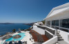 Puteti savura un mic dejun american tip bufet in fiecare dimineată in restaurantul à la carte sau in intimitatea camerei proprii. Restaurantul in aer liber serveste preparate din bucătăria mediteraneană si grecească. Barul de langă piscină are vedere la piscină si la mare. Oaspetii au la dispozitie si room service.