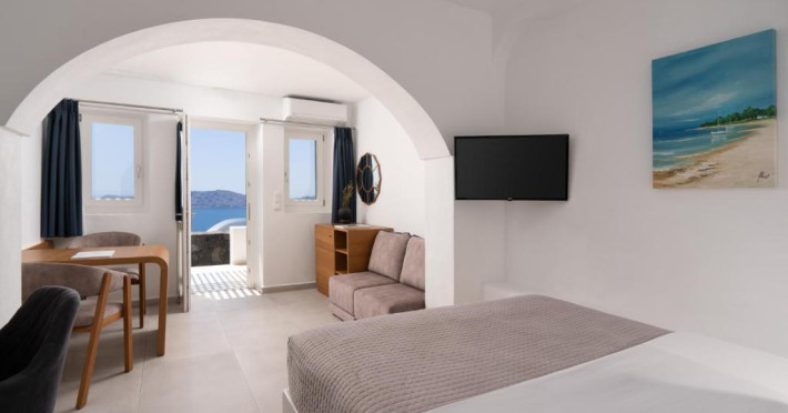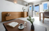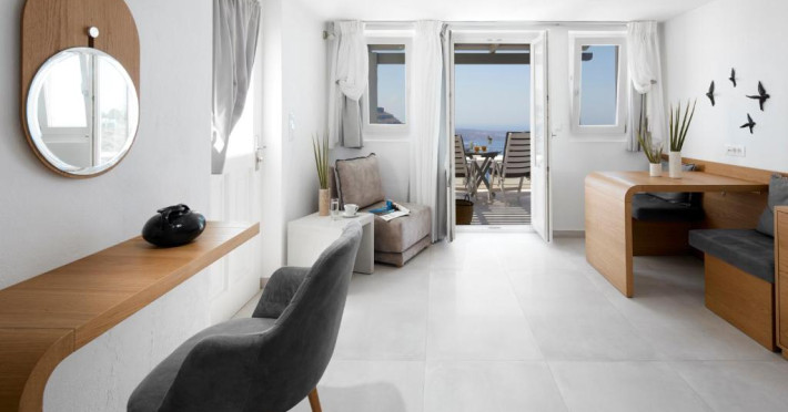 Unitătile sunt amenajate modern, păstrand in acelasi timp stilul insulelor Ciclade. Acestea au TV LCD de 26 inch cu canale prin satelit, laptop, cutie de valori si minibar. Baia include uscător de păr, halate si articole de toaletă.