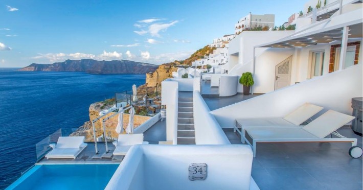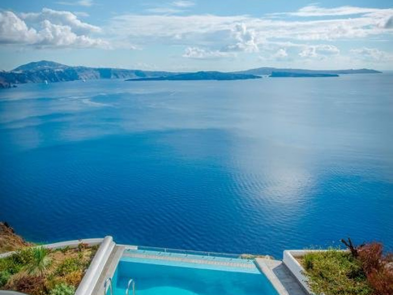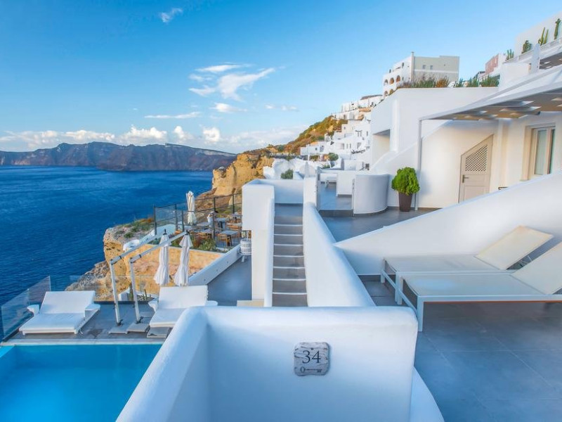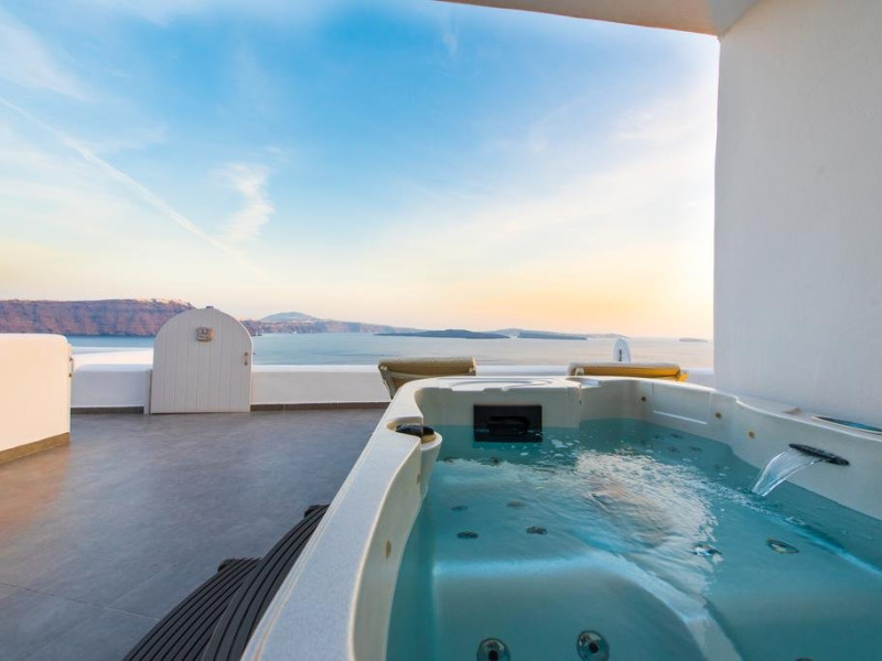 Hotelul este situat la 100 m deasupra nivelului marii, in faimoasa Oia, oferind o panorama incredibila asupra calderei si Marii Egee. Hotelul este situat la 10 km de binecunoscuta capitala a insulei, Fira. Aeroportul International din Santorini este situat la 18 km, iar portul Athinios la 20 km.