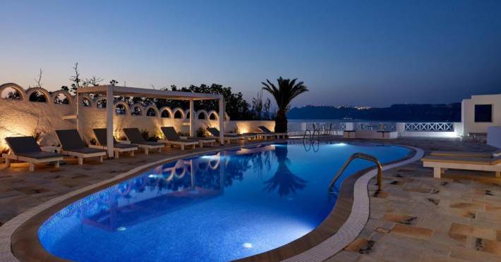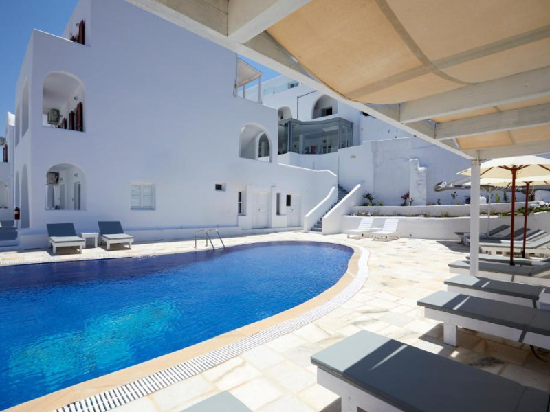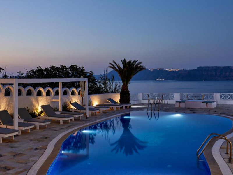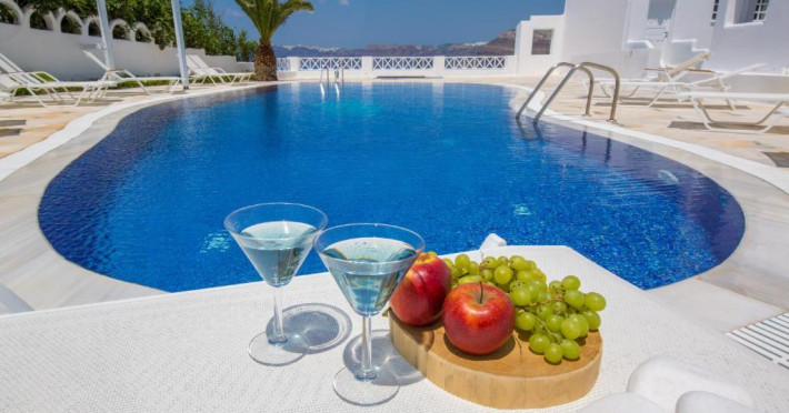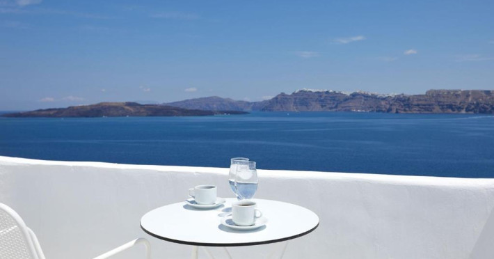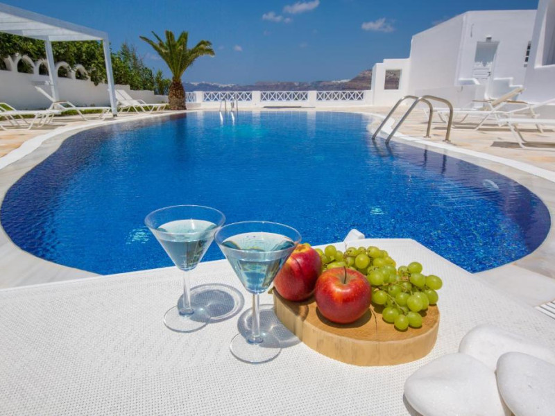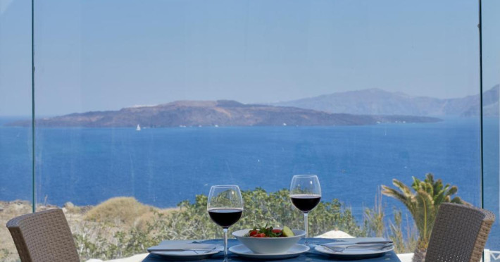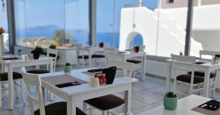 Oaspeții cazați la Santorini View au la dispoziție un mic dejun tip bufet. Restaurantul de la acest hotel servește preparate din bucătăria grecească.