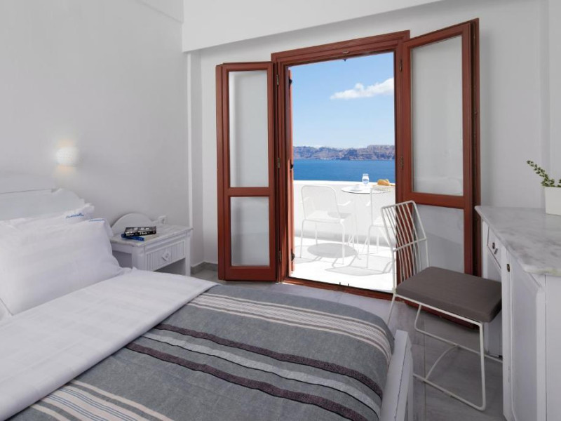 Acest hotel pune la dispoziția oaspeților camere care includ aer condiționat, un dulap pentru haine, un ibric electric, un frigider, o cutie de valori, un televizor cu ecran plat și o baie proprie cu duș. Baia proprie oferă articole de toaletă gratuite. La Santorini View, fiecare cameră are lenjerie de pat și prosoape.